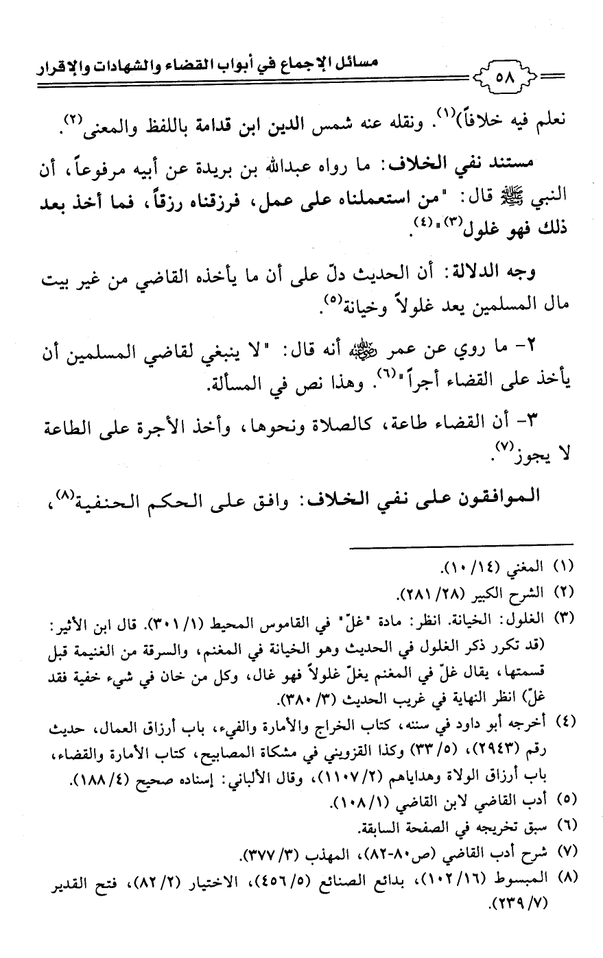 • مستند نفي الخلاف: ما رواه عبد اللَّه بن بريدة عن أبيه مرفوعًا، أن النبي -صلى اللَّه عليه وسلم- قال: "من استعملناه على عمل، فرزقناه رزقًا، فما أخذ بعد ذلك فهو غلول (¬3) " (¬4).