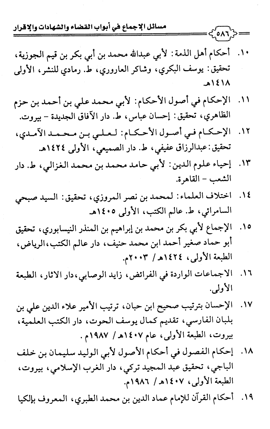 11 - الإحكام في أصول الأحكام: لأبي محمد علي بن أحمد بن حزم الظاهري، تحقيق: إحسان عباس، ط. دار الآفاق الجديدة - بيروت.