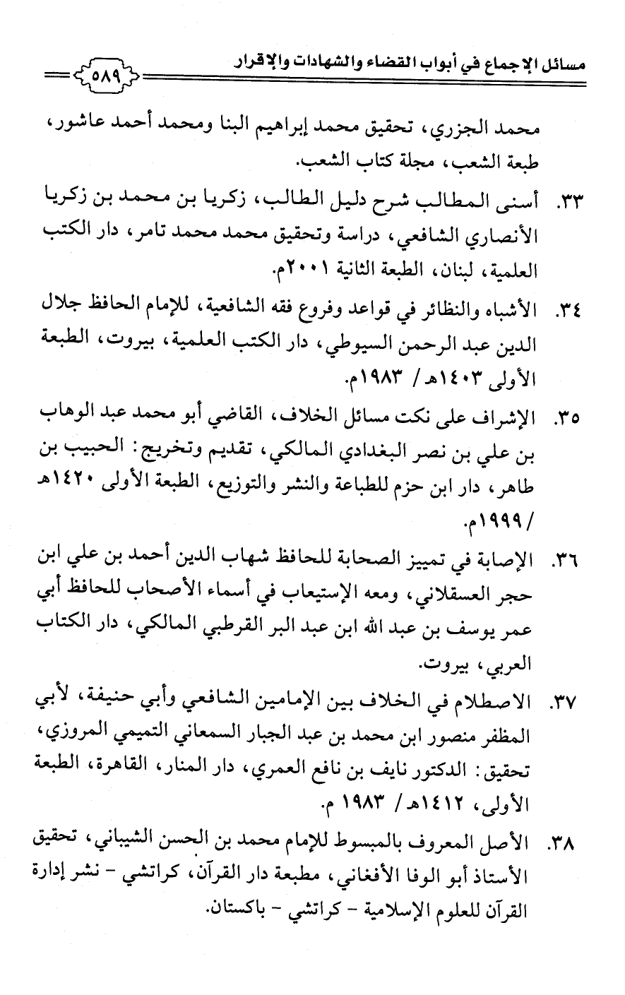 34 - الأشباه والنظائر في قواعد وفروع فقه الشافعية، للإمام الحافظ جلال الدين عبد الرحمن السيوطي، دار الكتب العلمية، بيروت، الطبعة الأولى 1403 هـ/ 1983 م.