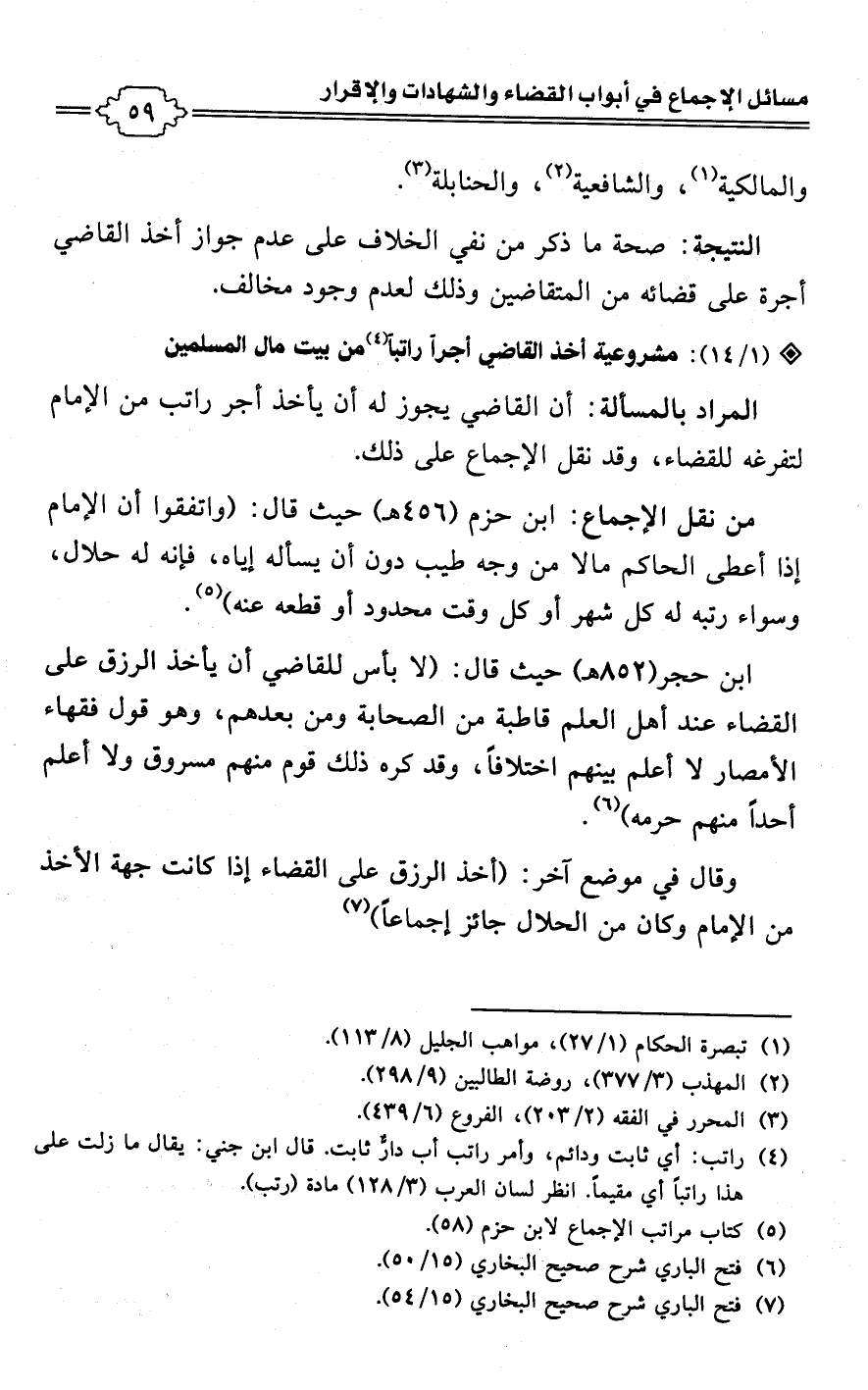 [14/ 1]: مشروعية أخذ القاضي أجرًا راتبًا (¬4) من بيت مال المسلمين