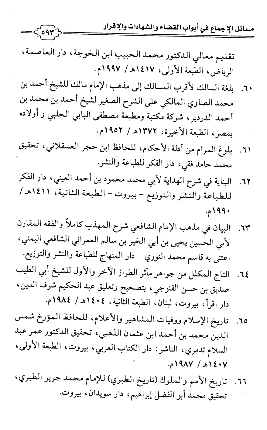 60 - بلغة السالك لأقرب المسالك إلى مذهب الإمام مالك للشيخ أحمد بن محمد الصاوي المالكي على الشرح الصغير للشيخ أحمد بن محمد بن أحمد الدردير، شركة مكتبة ومطبعة مصطفى البابي الحلبي وأولاده بمصر، الطبعة الأخيرة، 1372 هـ/ 1952 م.