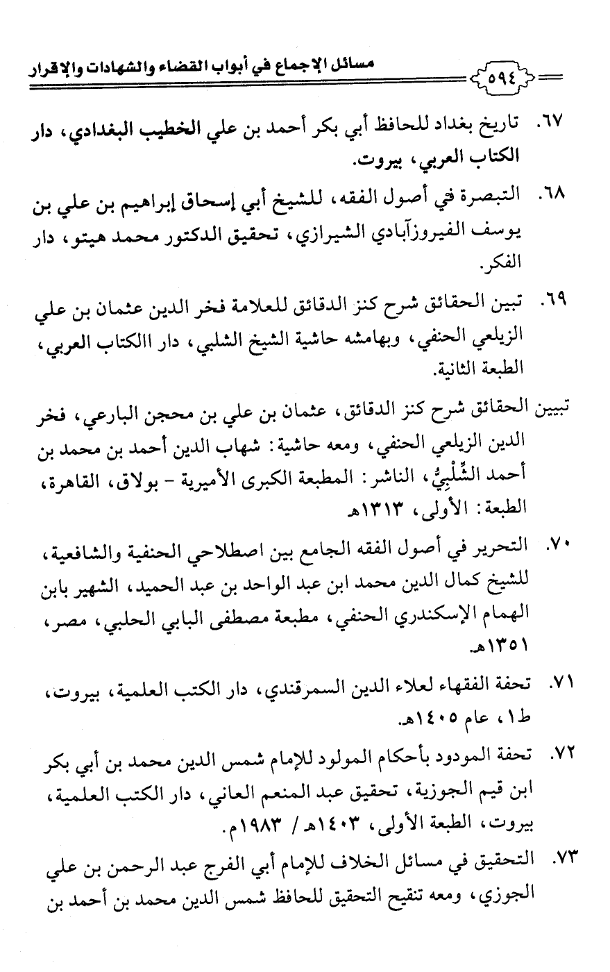 69 - تبين الحقائق شرح كنز الدقائق للعلامة فخر الدين عثمان بن علي الزيلعي الحنفي، وبهامشه حاشية الشيخ الشلبي، دار الكتاب العربي، الطبعة الثانية.