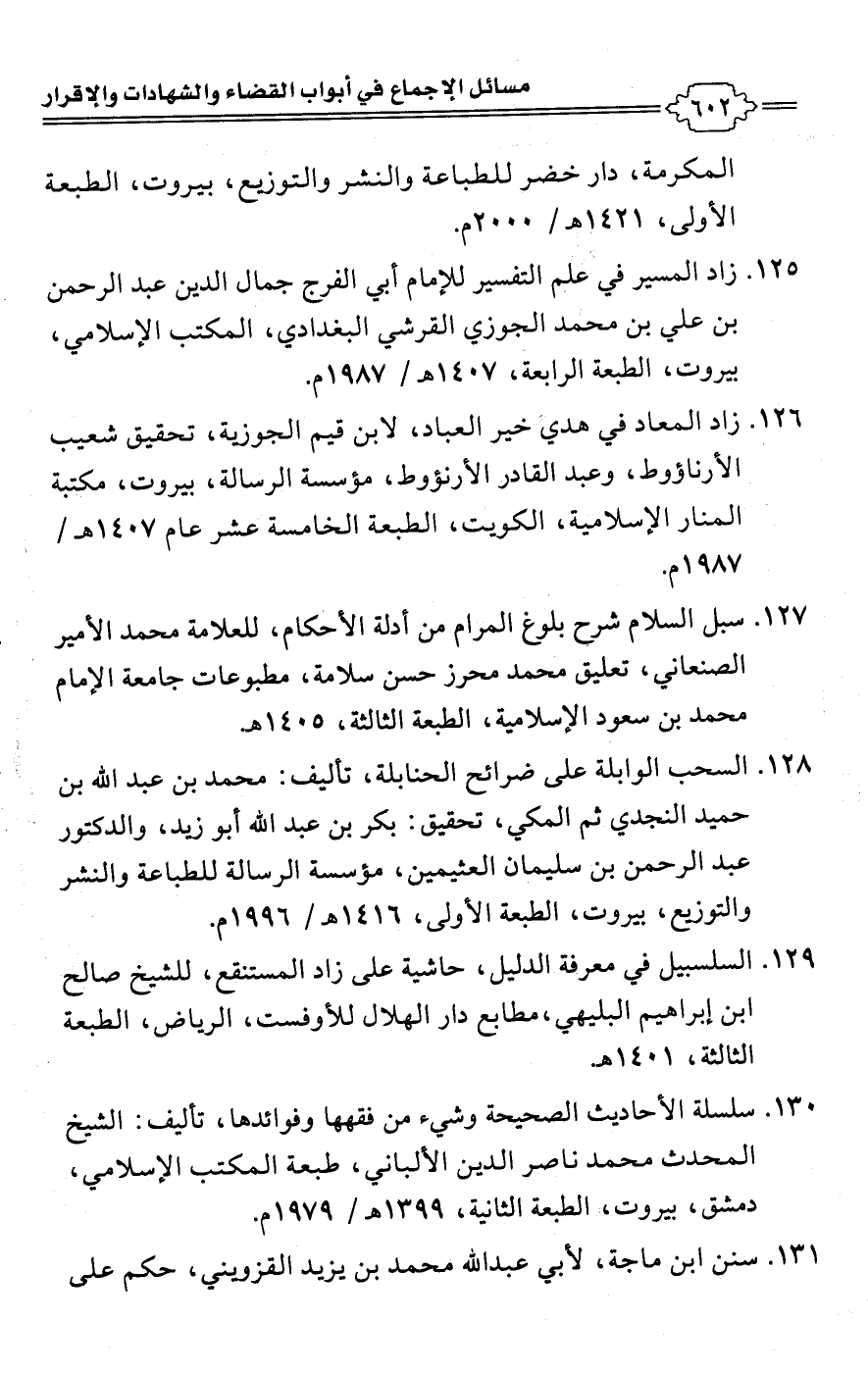 125 - زاد المسير في علم التفسير للإمام أبي الفرج جمال الدين عبد الرحمن بن علي بن محمد الجوزي القرشي البغدادي، المكتب الإسلامي، بيروت، الطبعة الرابعة، 1407 هـ/ 1987 م.
