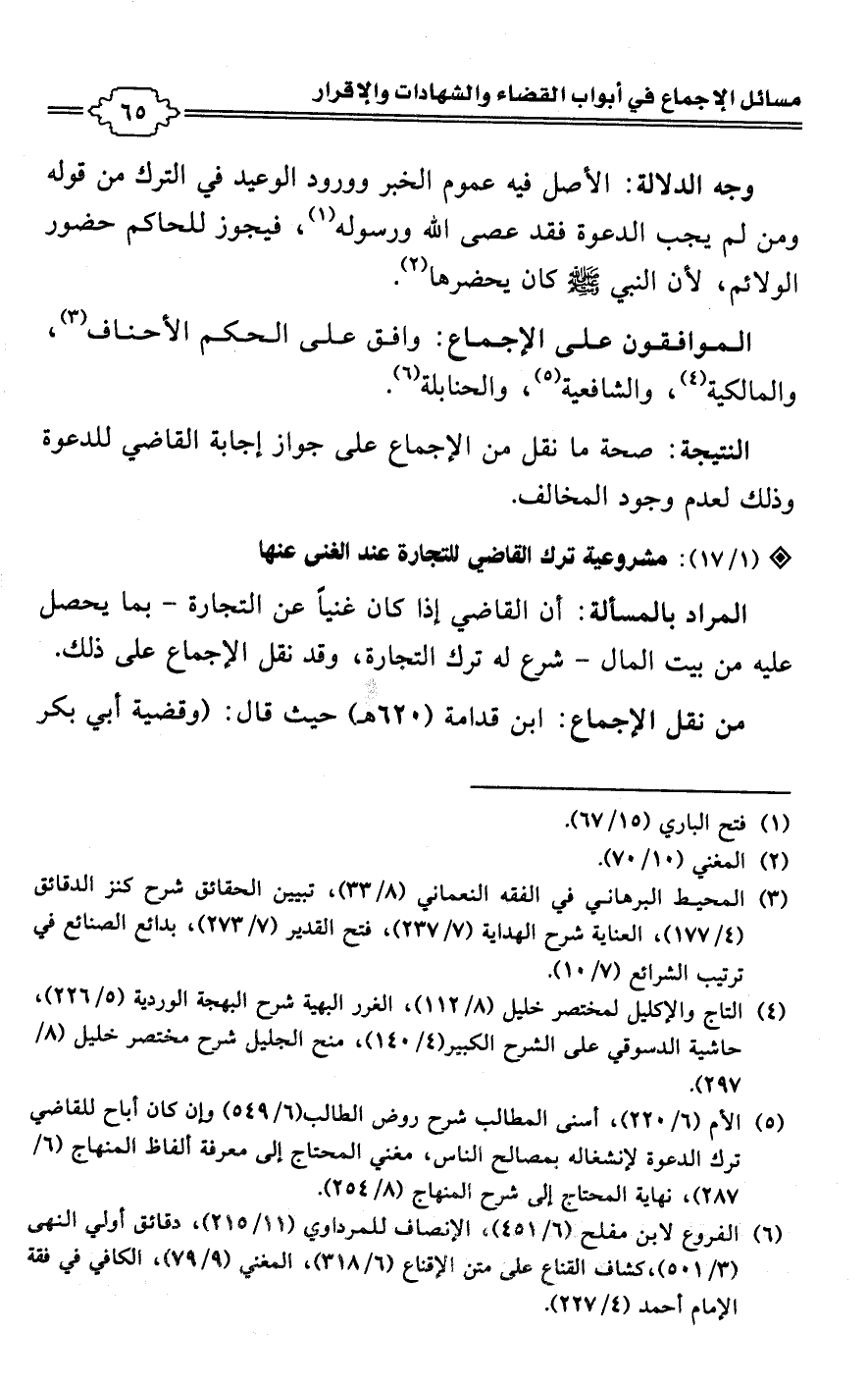 • الموافقون على الإجماع: وافق على الحكم الأحناف (¬3)، والمالكية (¬4)، والشافعية (¬5)، والحنابلة (¬6).Rصحة ما نقل من الإجماع على جواز إجابة القاضي للدعوة وذلك لعدم وجود المخالف.