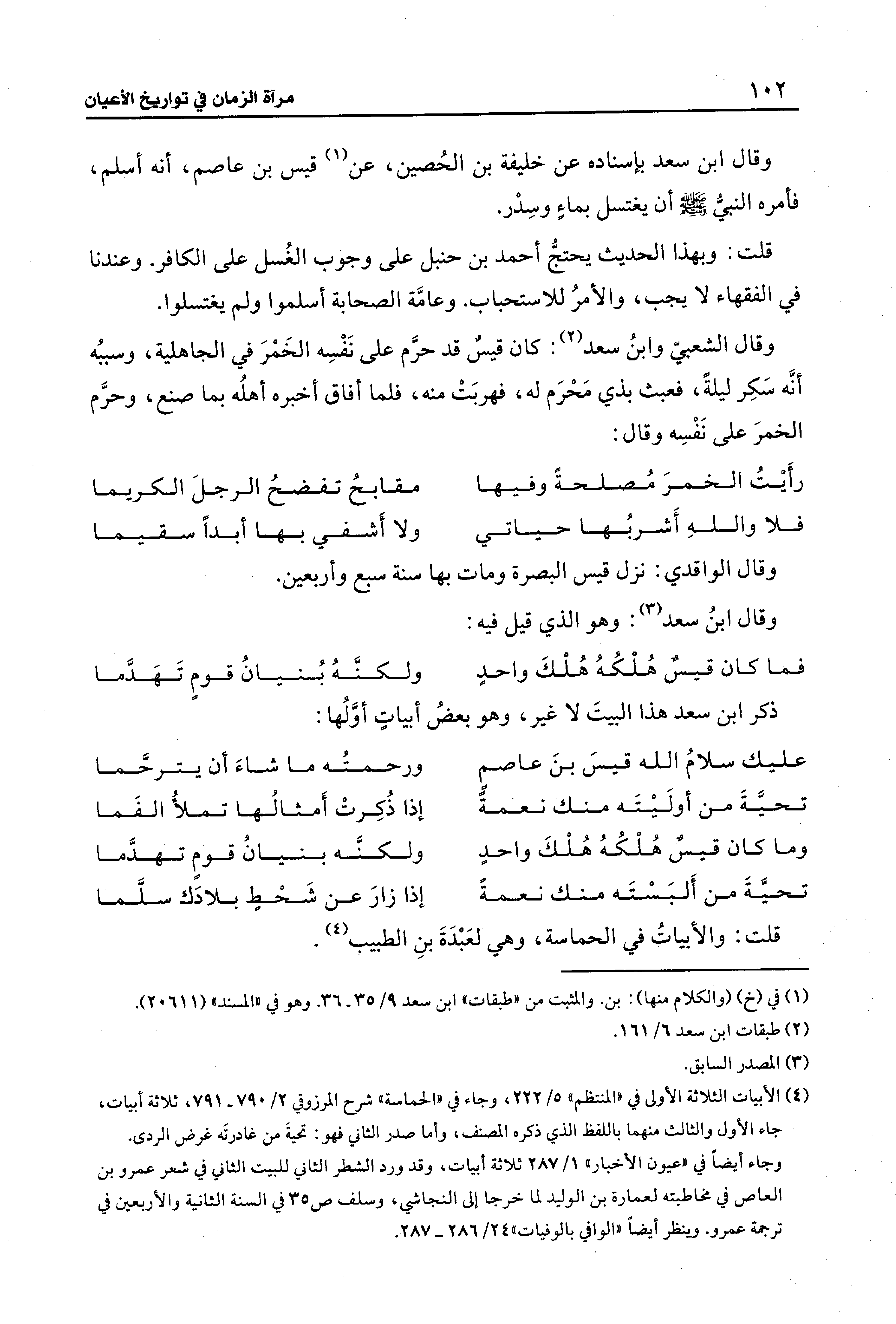وجاء أيضًا في "عيون الأخبار" 1/ 287 ثلاثة أبيات، وقد ورد الشطر الثاني للبيت الثاني في شعر عمرو بن العاص في مخاطبته لعمارة بن الوليد لما خرجا إلى النجاشي، وسلف ص 35 في السنة الثانية والأربعين في ترجمة عمرو. وينظر أيضًا "الوافي بالوفيات" 24/ 286 - 287.