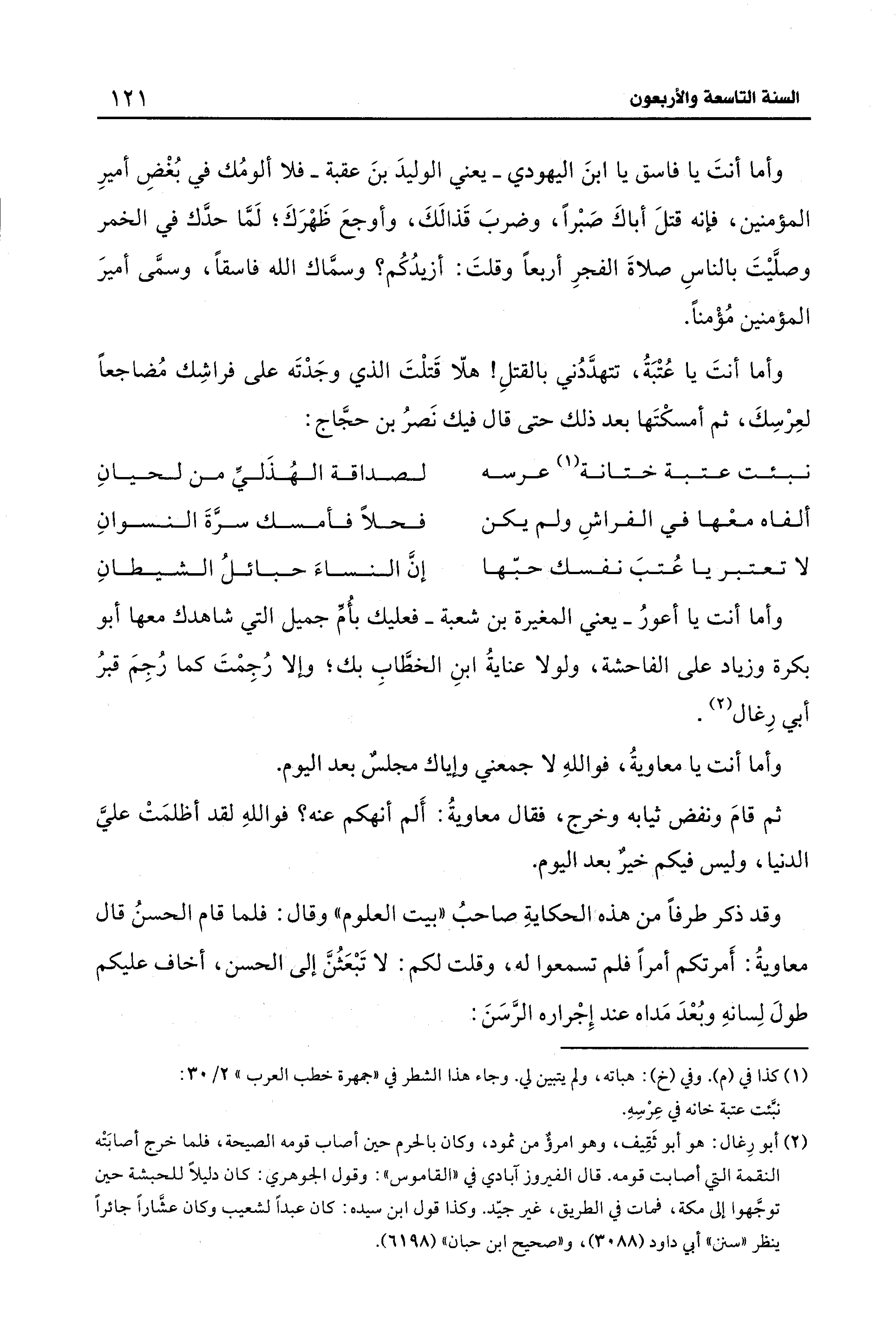 وأما أنت يا أعورُ -يعني المغيرة بن شعبة- فعليك بأُمّ جميل التي شاهدك معها أبو بكرة وزياد على الفاحشة، ولولا عنايةُ ابنِ الخطَّابِ بك؛ وإلا رُجِمْتَ كما رُجِمَ قبرُ أبي رِغال (¬2).