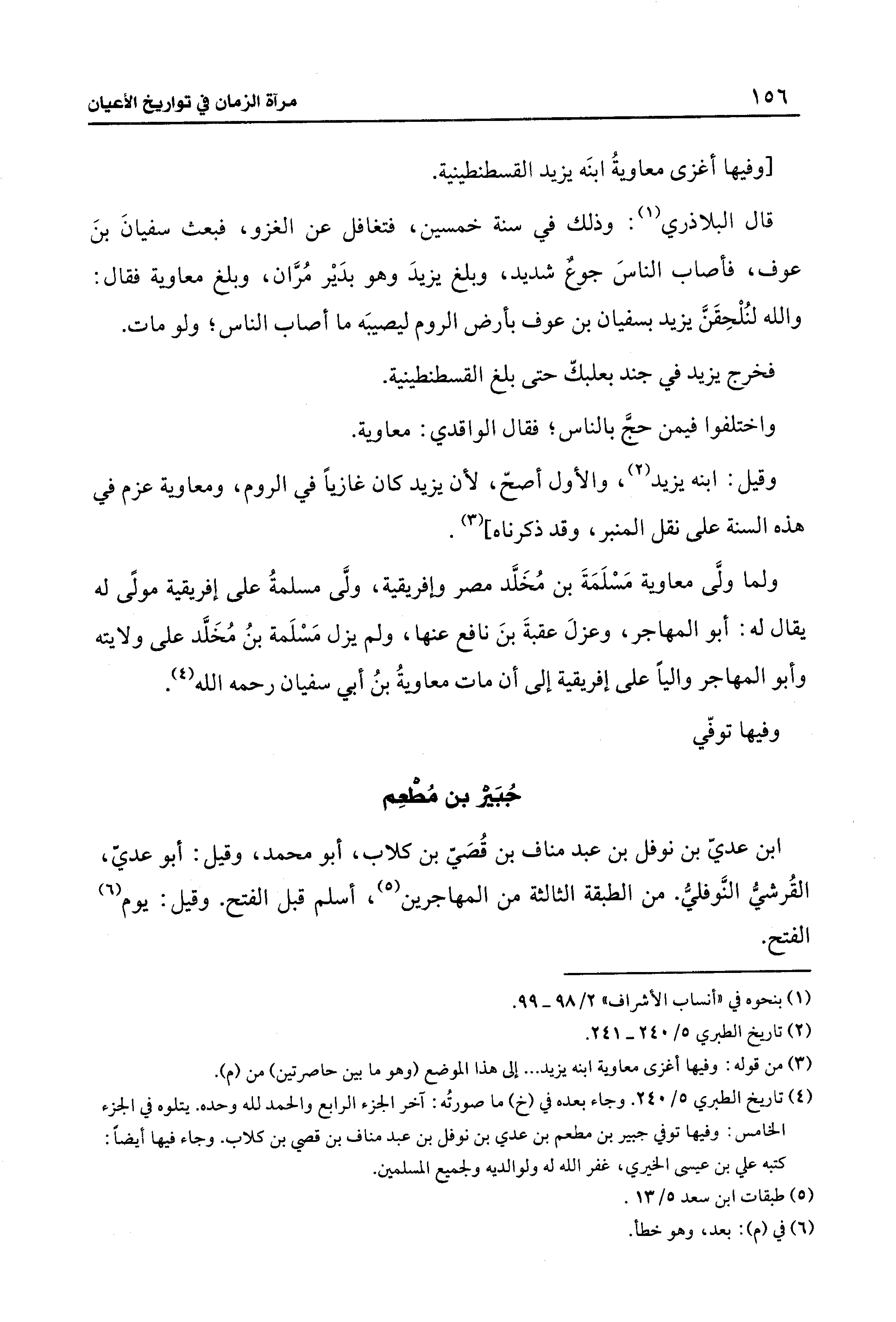 (¬4) تاريخ الطبري 5/ 240. وجاء بعده في (خ) ما صورتُه: آخر الجزء الرابع والحمد لله وحده. يتلوه في الجزء الخامس: وفيها توفي جبير بن مطعم بن عدي بن نوفل بن عبد مناف بن قصي بن كلاب. وجاء فيها أيضًا: كتبه علي بن عيسى الخيري، غفر الله له ولوالديه ولجميع المسلمين.