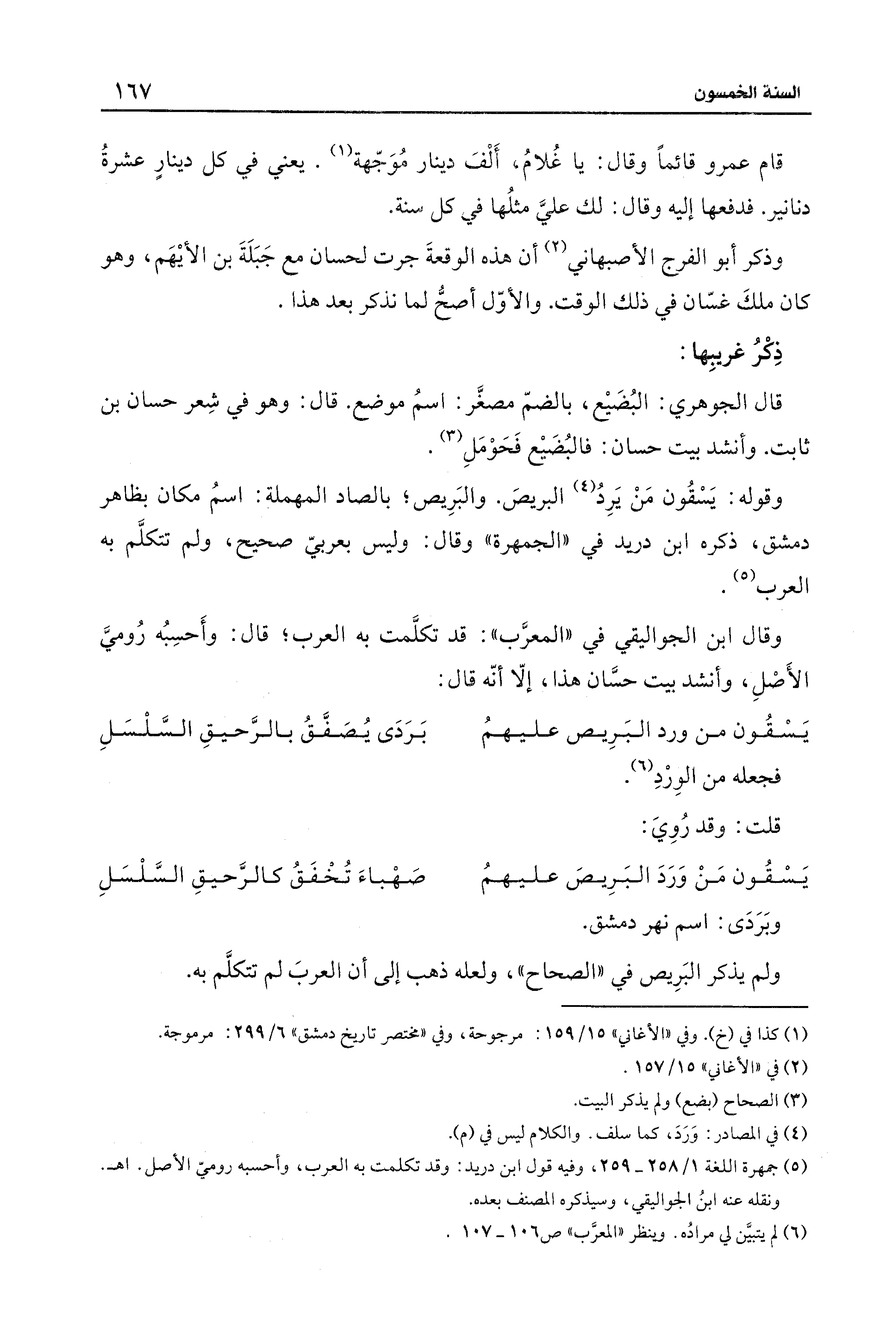 وقوله: يَسْقُون مَنْ يَرِدُ (¬4) البريصَ. والبَرِيص؛ بالصاد المهملة: اسمُ مكان بظاهر دمشق، ذكره ابن دريد في "الجمهرة" وقال: وليس بعربيّ صحيح، ولم تتكلَّم به العرب (¬5).
