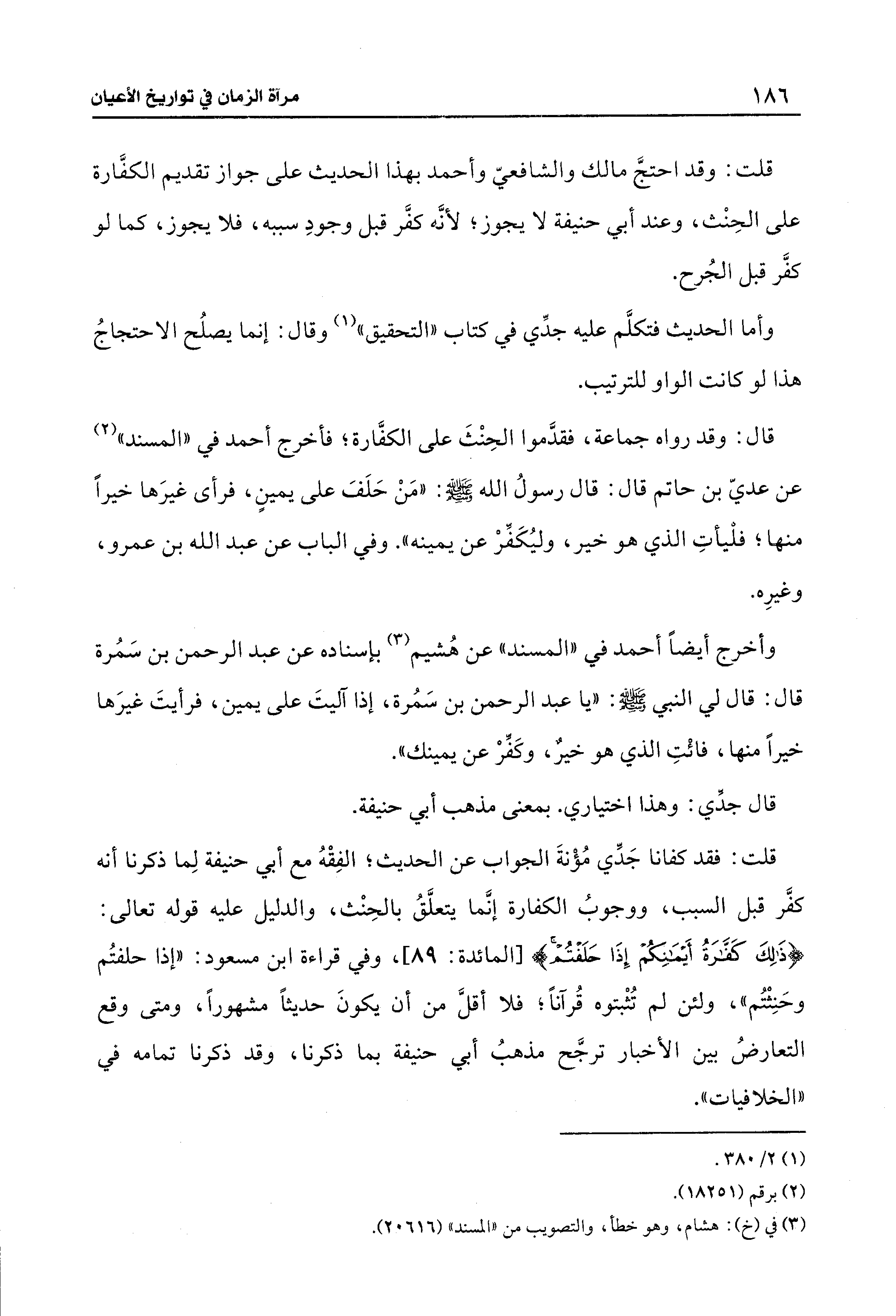 قلت: فقد كفانا جَدِّي مُؤْنةَ الجواب عن الحديث؛ الفِقْهُ مع أبي حنيفة لِما ذكرنا أنه كفَّر قبل السبب، ووجوث الكفارة إنَّما يتعلَّقُ بالحِنْث، والدليل عليه قوله تعالى: {ذَلِكَ كَفَّارَةُ أَيمَانِكُمْ إِذَا حَلَفْتُمْ} [المائدة: 89]، وفي قراءة ابن مسعود: "إذا حلفتُم وحَنِثْتُم"، ولئن لم تُثْبتوه قُرآنًا، فلا أقلَّ من أن يكونَ حديثًا مشهورًا، ومتى وقع التعارضُ بين الأخبار ترجَّح مذهبُ أبي حنيفة بما ذكرنا، وقد ذكرنا تمامه في "الخلافيات".