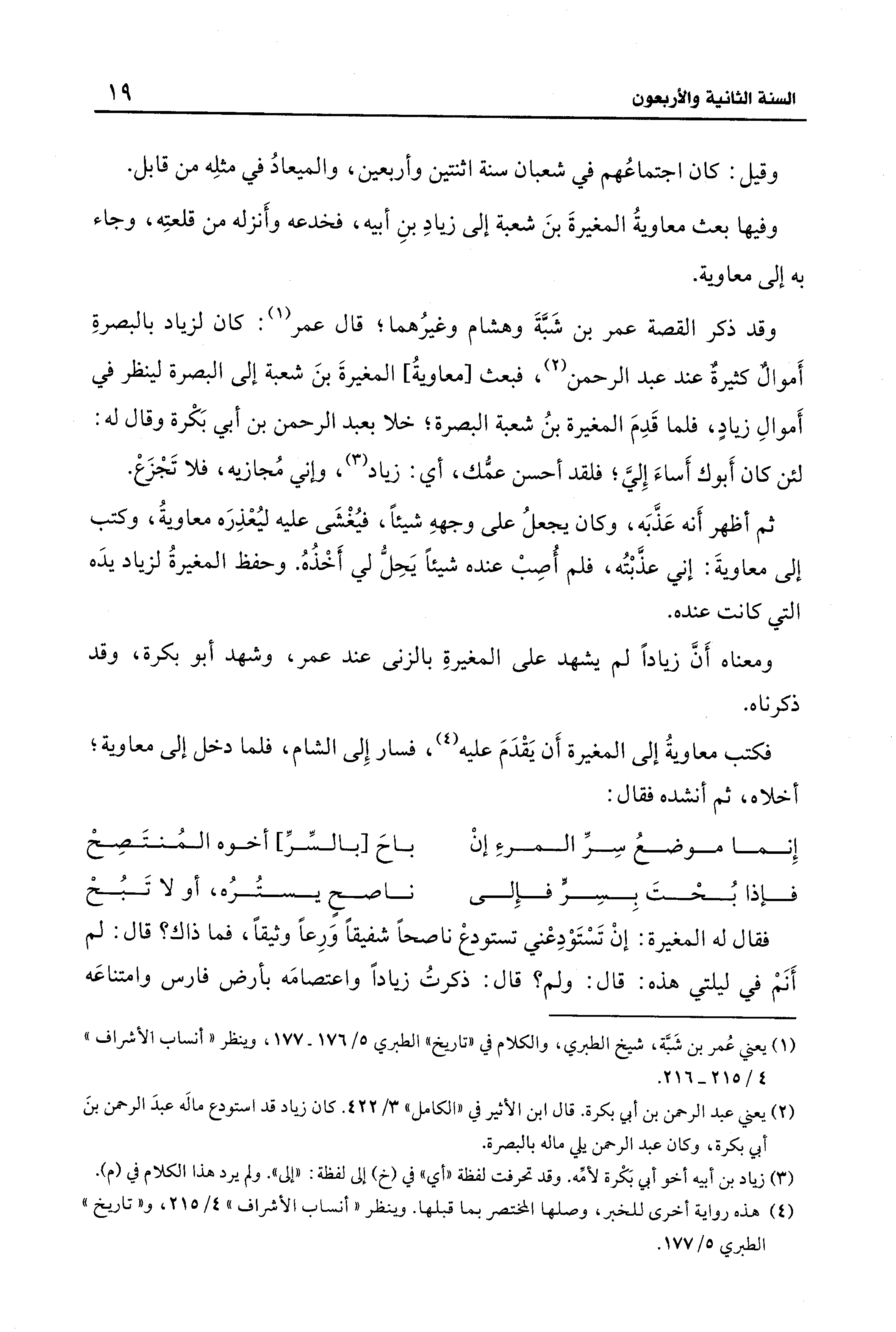 وفيها بعث معاويةُ المغيرةَ بنَ شعبة إلى زيادِ بنِ أبيه، فخدعه وأَنزله من قلعتِه، وجاء به إلى معاوية.