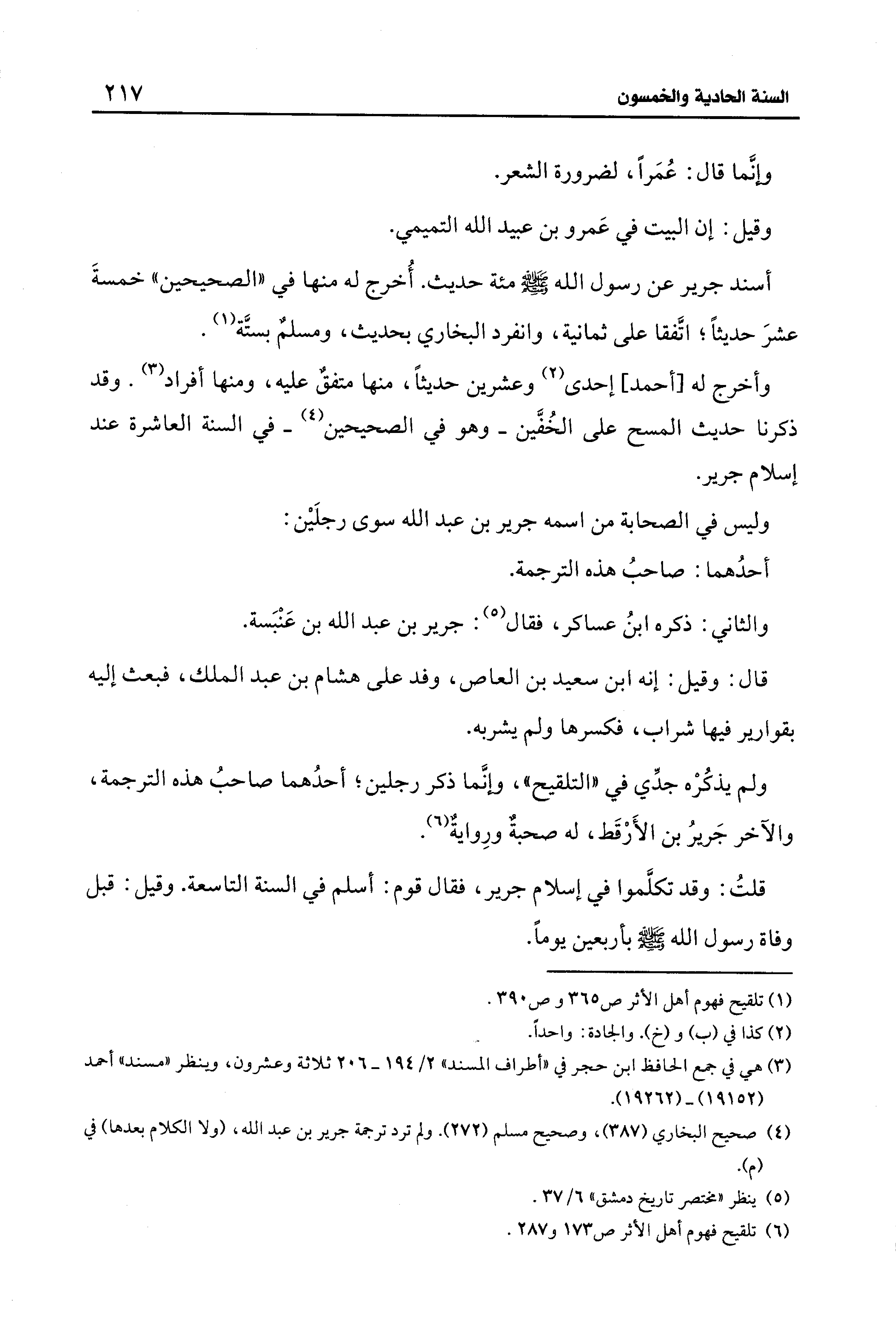 (¬4) صحيح البخاري (387)، وصحيح مسلم (272). ولم ترد ترجمة جرير بن عبد الله، (ولا الكلام بعدها) في (م).