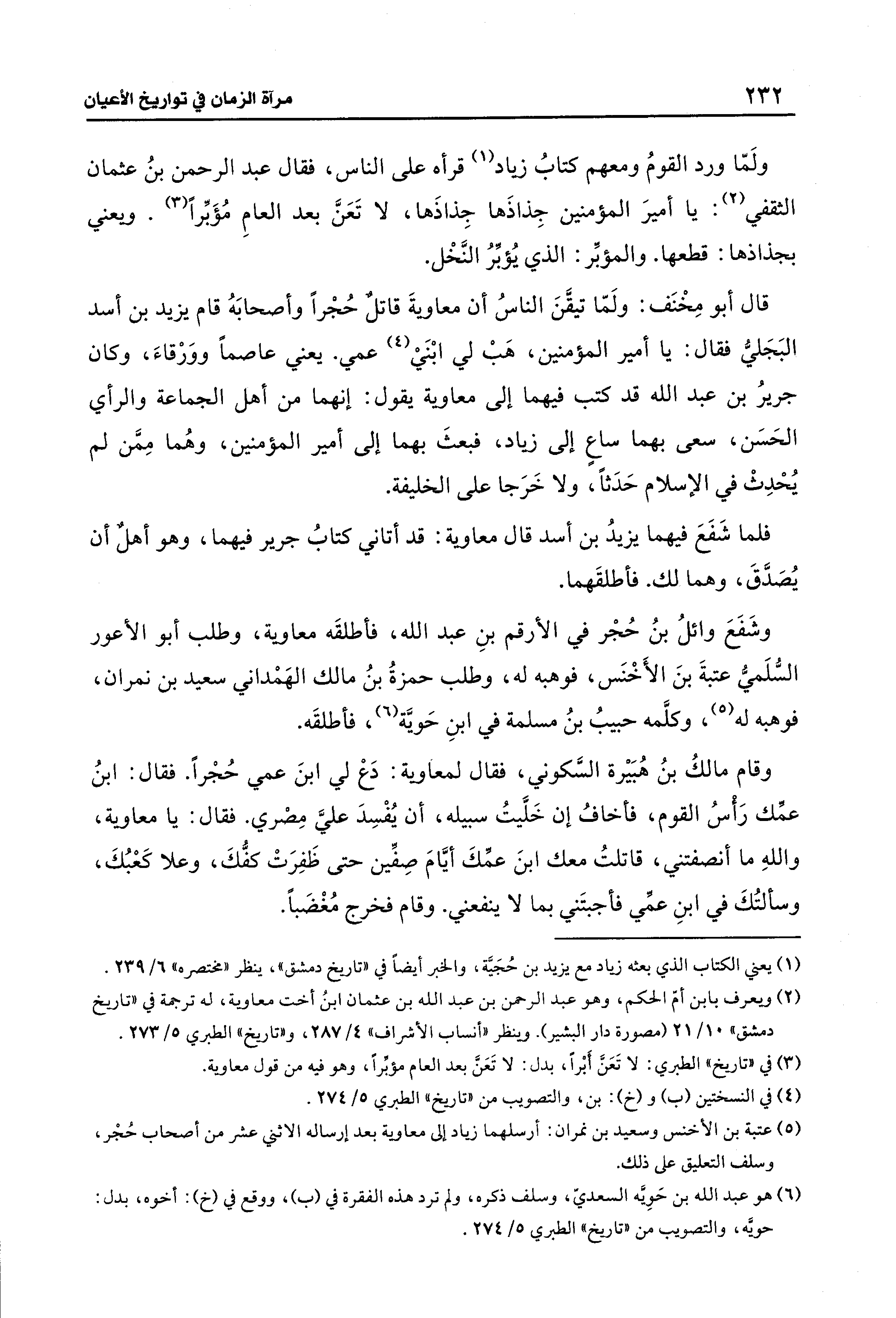 (¬1) يعني الكتاب الذي بعثه زياد مع يزيد بن حُجَيَّة، والخبر أيضًا في "تاريخ دمشق"، ينظر "مختصره" 6/ 239.