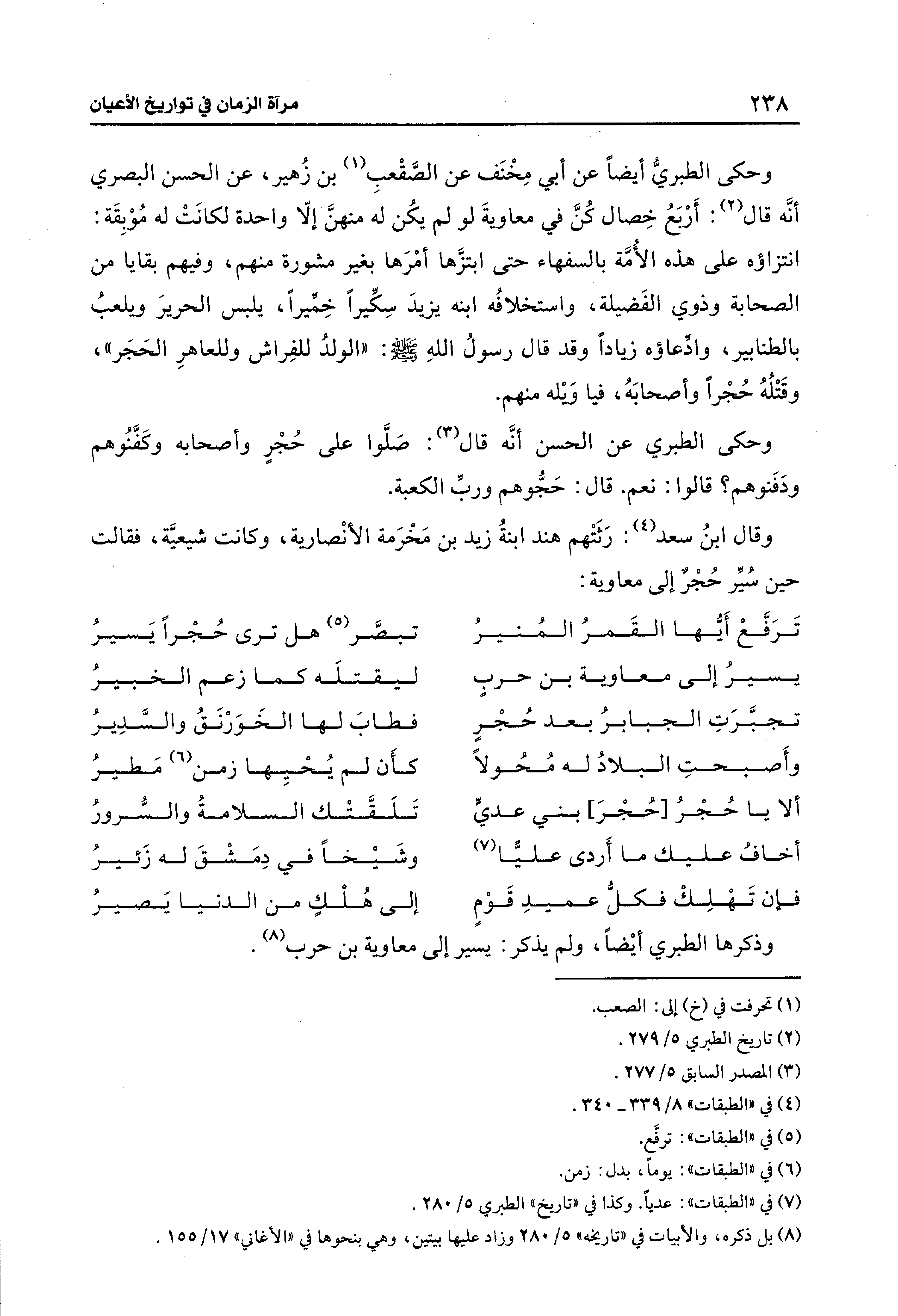 وذكرها الطبري أيضًا، ولم يذكر: يسير إلى معاوية بن حرب (¬8).