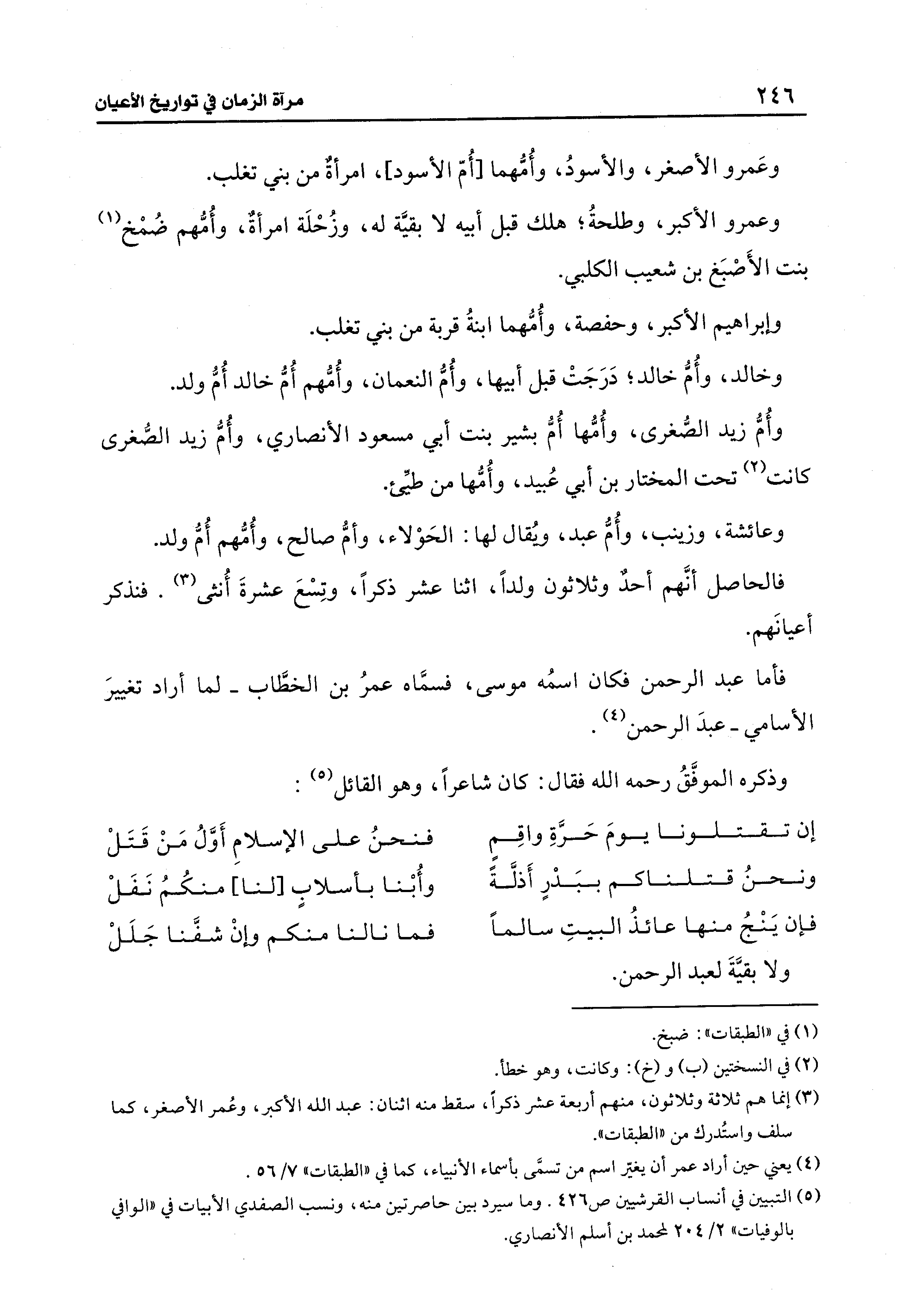 (¬5) التبيين في أنساب القرشيين ص 426. وما سيرد بين حاصرتين منه، ونسب الصفدي الأبيات في "الوافي بالوفيات" 2/ 204 لمحمد بن أسلم الأنصاري.