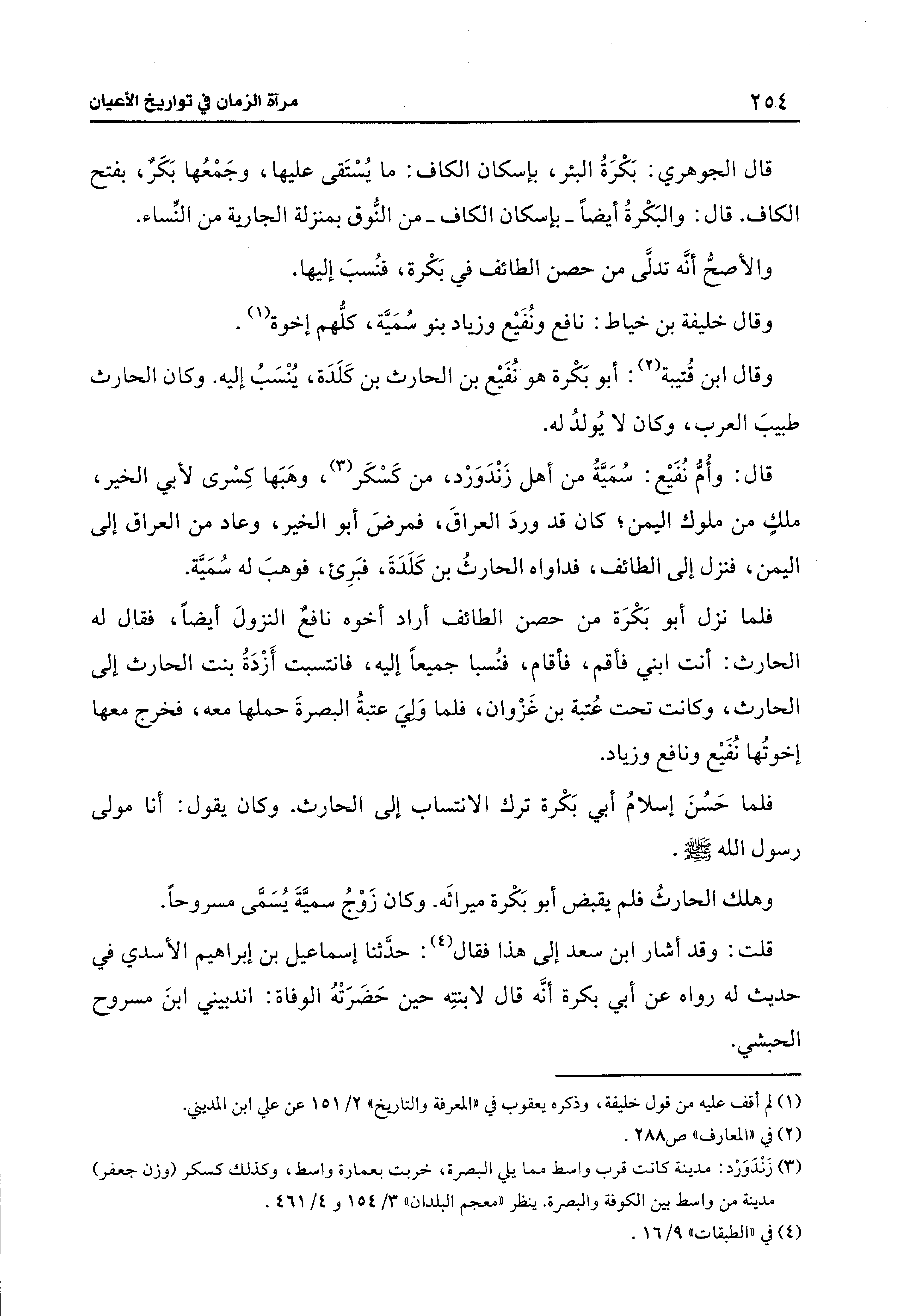 قال: وأُمُّ نُفَيع: سُمَيَّةُ من أهل زَنْدَوَرْد، من كَسْكَر (¬3)، وهبَها كسْرى لأبي الخير، ملكٍ من ملوك اليمن؛ كان قد وردَ العراقَ، فمرضَ أبو الخير، وعاد من العراق إلى اليمن، فنزل إلى الطائف، فداواه الحارثُ بن كَلَدَةَ، فبَرِئ، فوهبَ له سُمَيَّة.