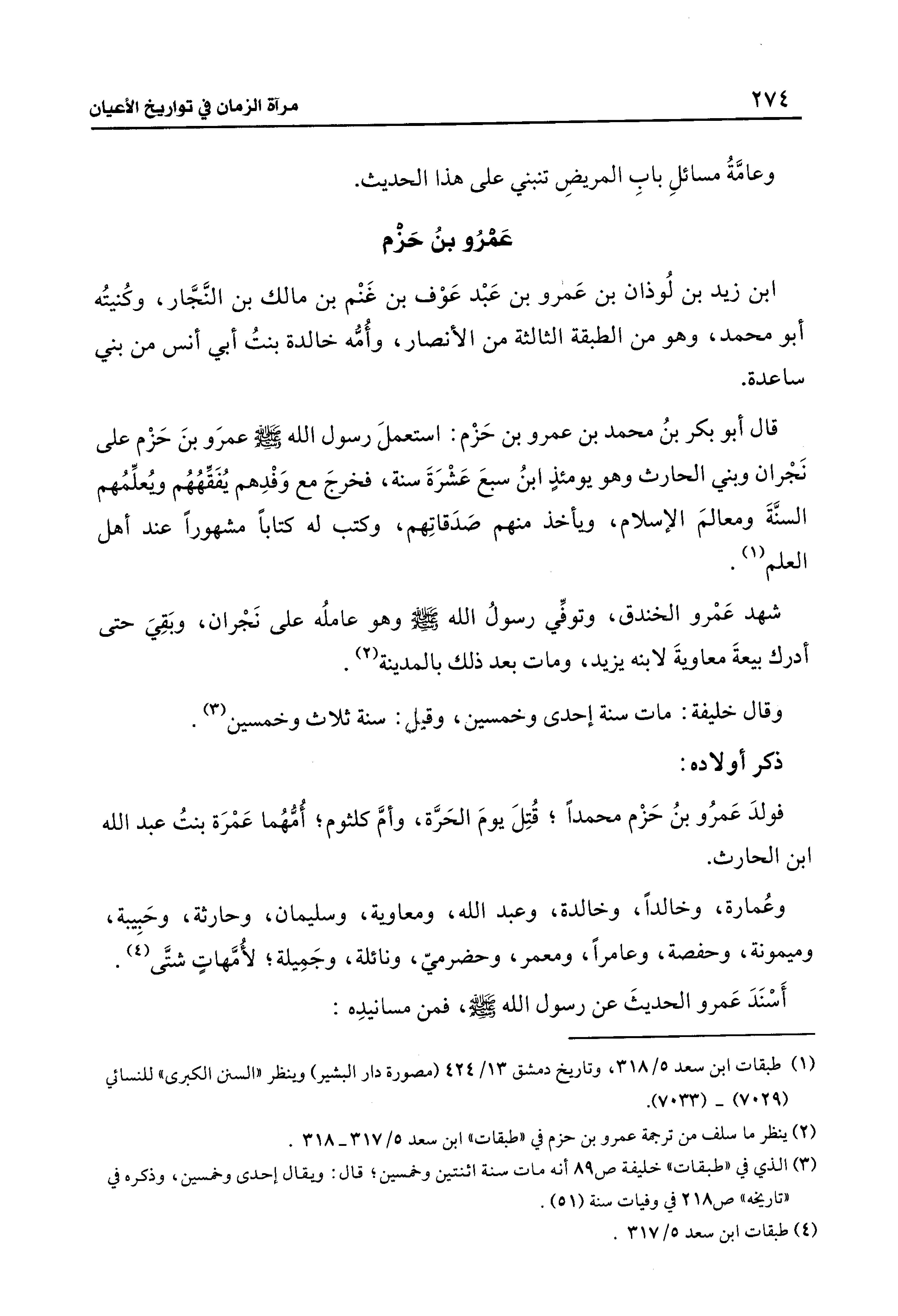 (¬2) ينظر ما سلف من ترجمة عمرو بن حزم في "طبقات" ابن سعد 5/ 317 - 318.