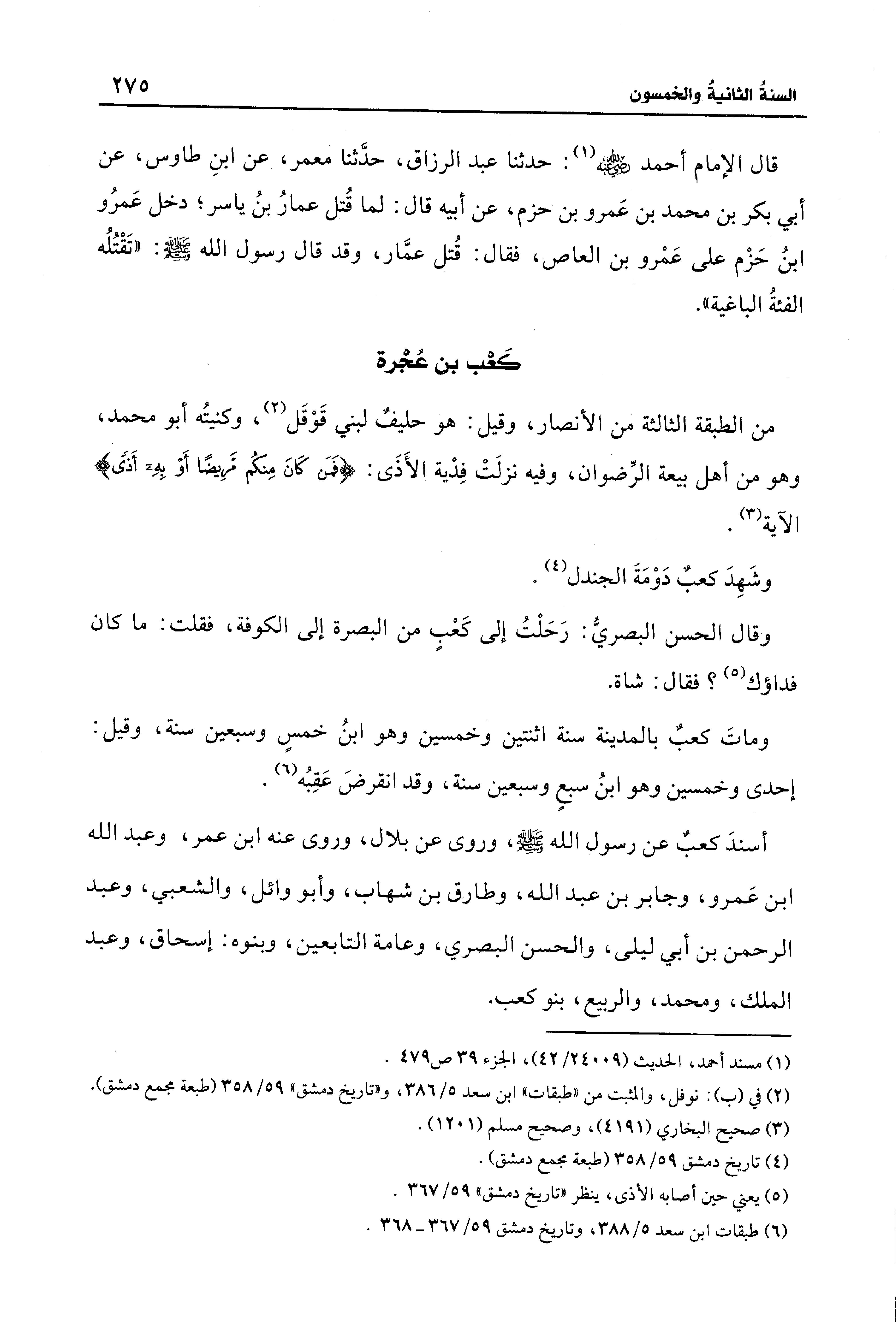 (¬6) طبقات ابن سعد 5/ 388، وتاريخ دمشق 59/ 367 - 368.