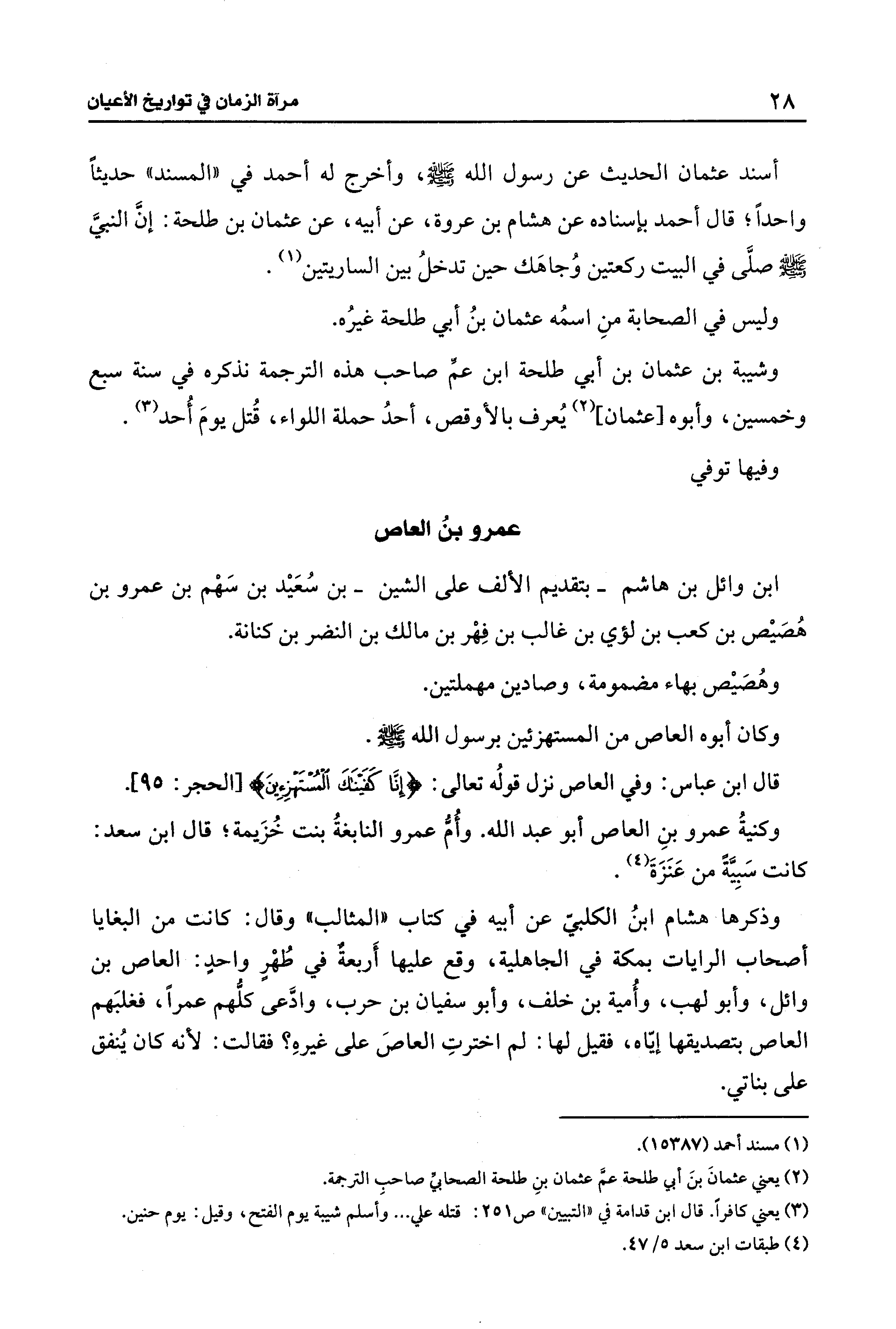 (¬2) يعني عثمانَ بنَ أبي طلحة عمَّ عثمان بنِ طلحة الصحابيِّ صاحبِ الترجمة.