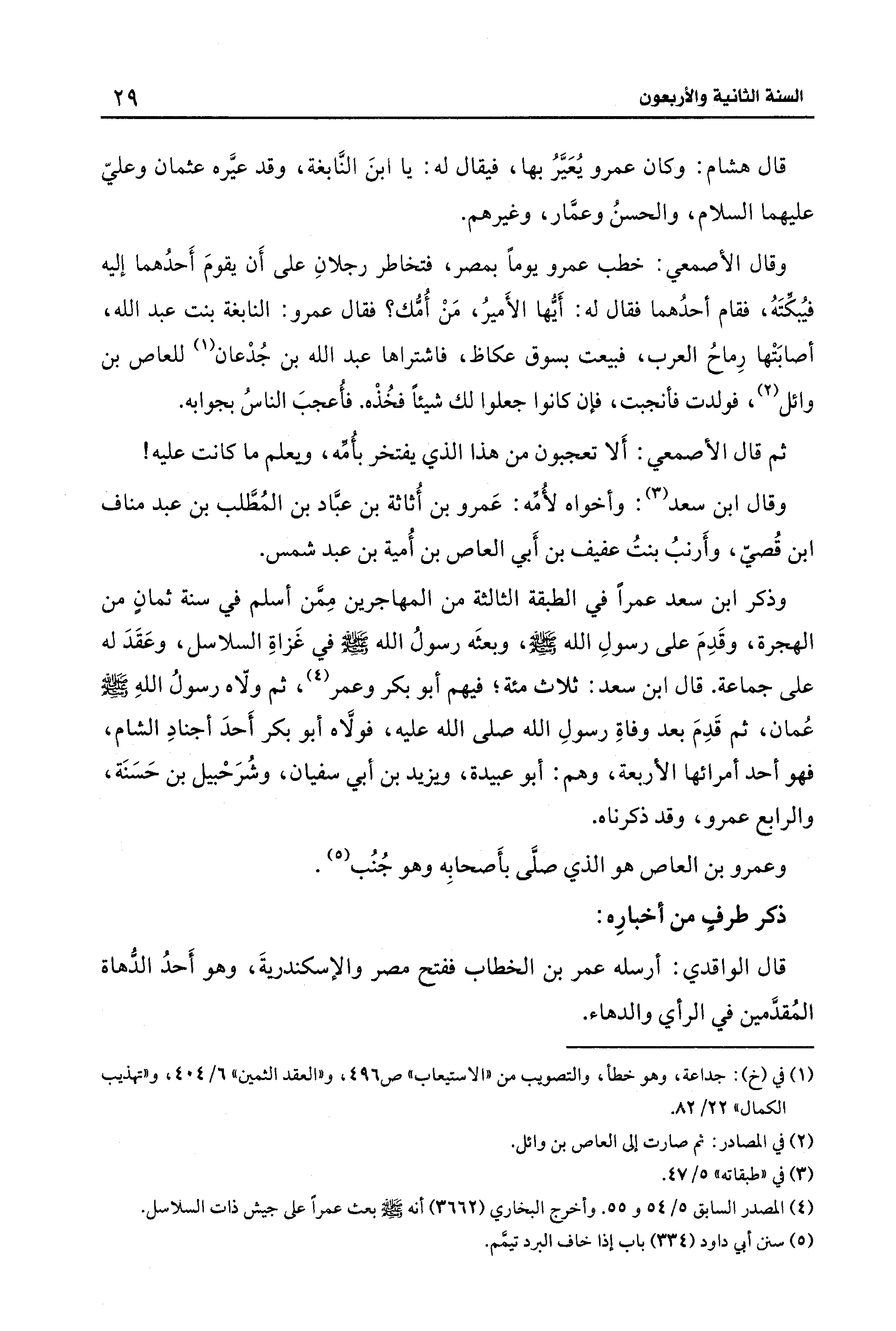 (¬4) المصدر السابق 5/ 54 و 55. وأخرج البخاري (3662) أنه - صلى الله عليه وسلم - بعث عمرًا على جيش ذات السلاسل.