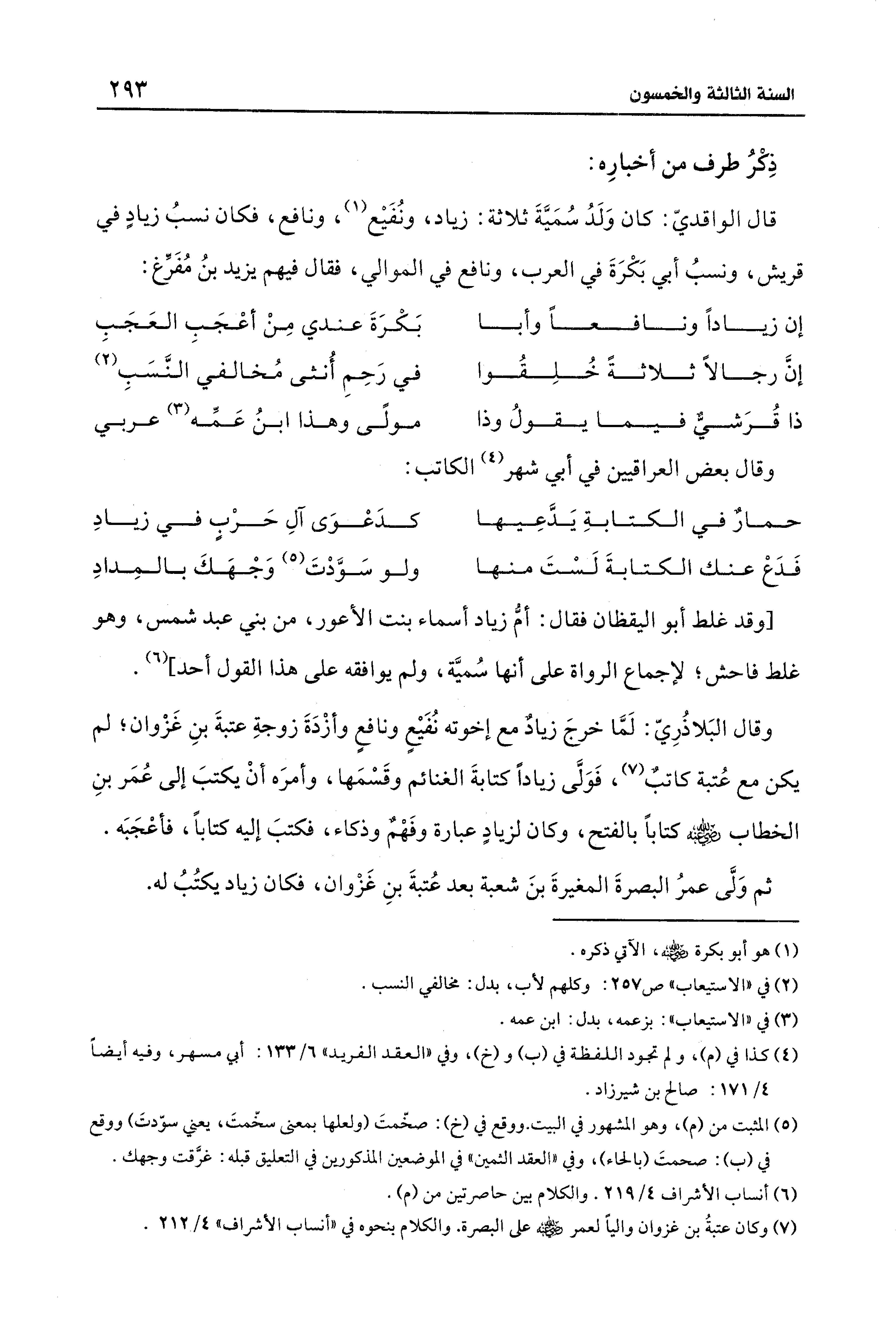 وقال البَلاذُرِيّ: لَمَّا خرجَ زياد مع إخوته نُفَيْعٍ ونافعٍ وأزْدَةَ زوجةِ عتبةَ بنِ غَزْوان؛ لم يكن مع عُتبة كاتب (¬7)، فَوَلَّى زيادا كتابةَ الغنائم وقَسْمَها، وأمرَه أنْ يكتبَ إلى عُمَر بنِ الخطاب - صلى الله عليه وسلم - كتابًا بالفتح، وكان لزيادٍ عبارة وفَهْمٌ وذكاء، فكتبَ إليه كتابًا، فأعجَبَه.