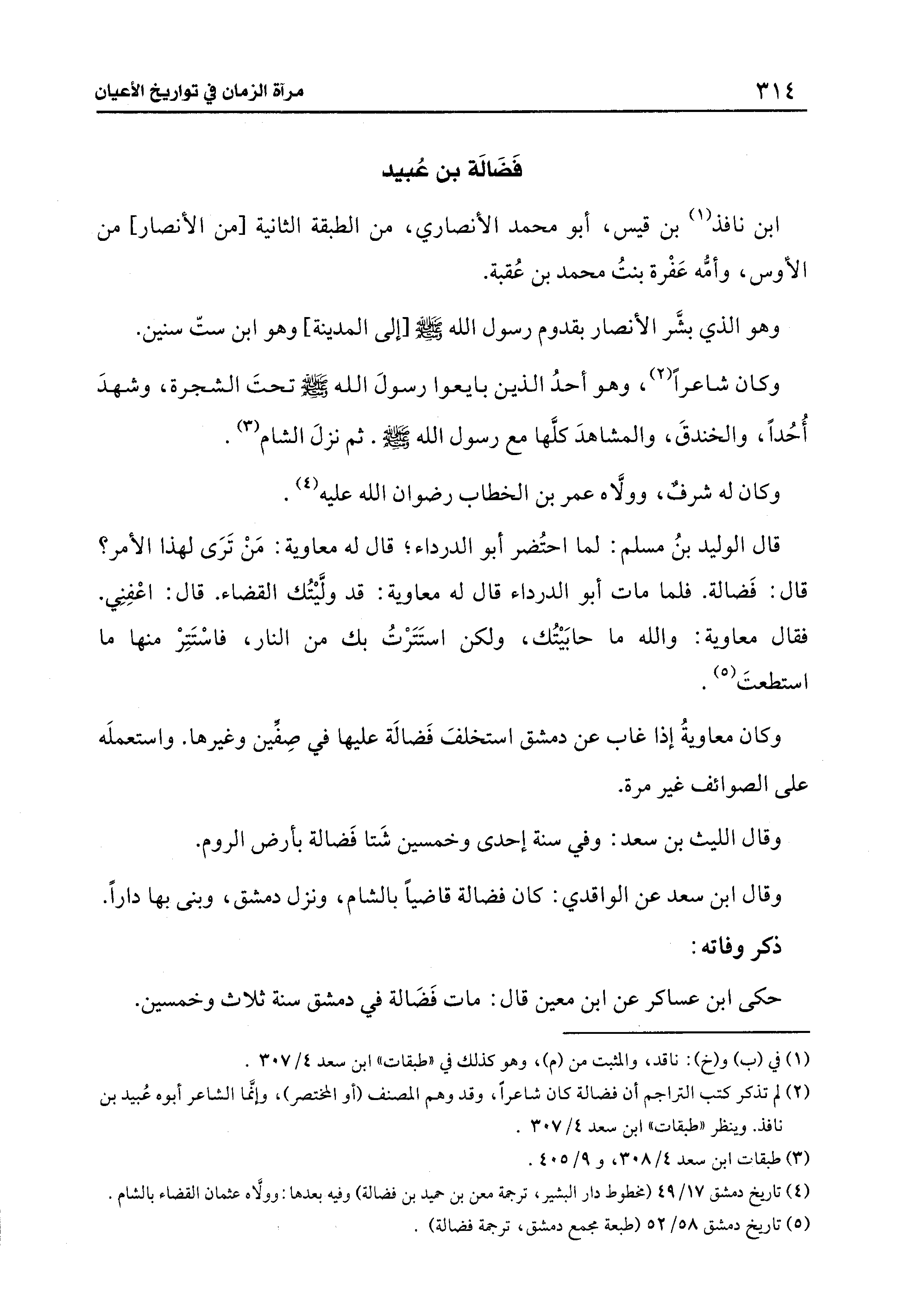 (¬5) تاريخ دمشق 58/ 52 (طبعة مجمع دمشق، ترجمة فضالة).