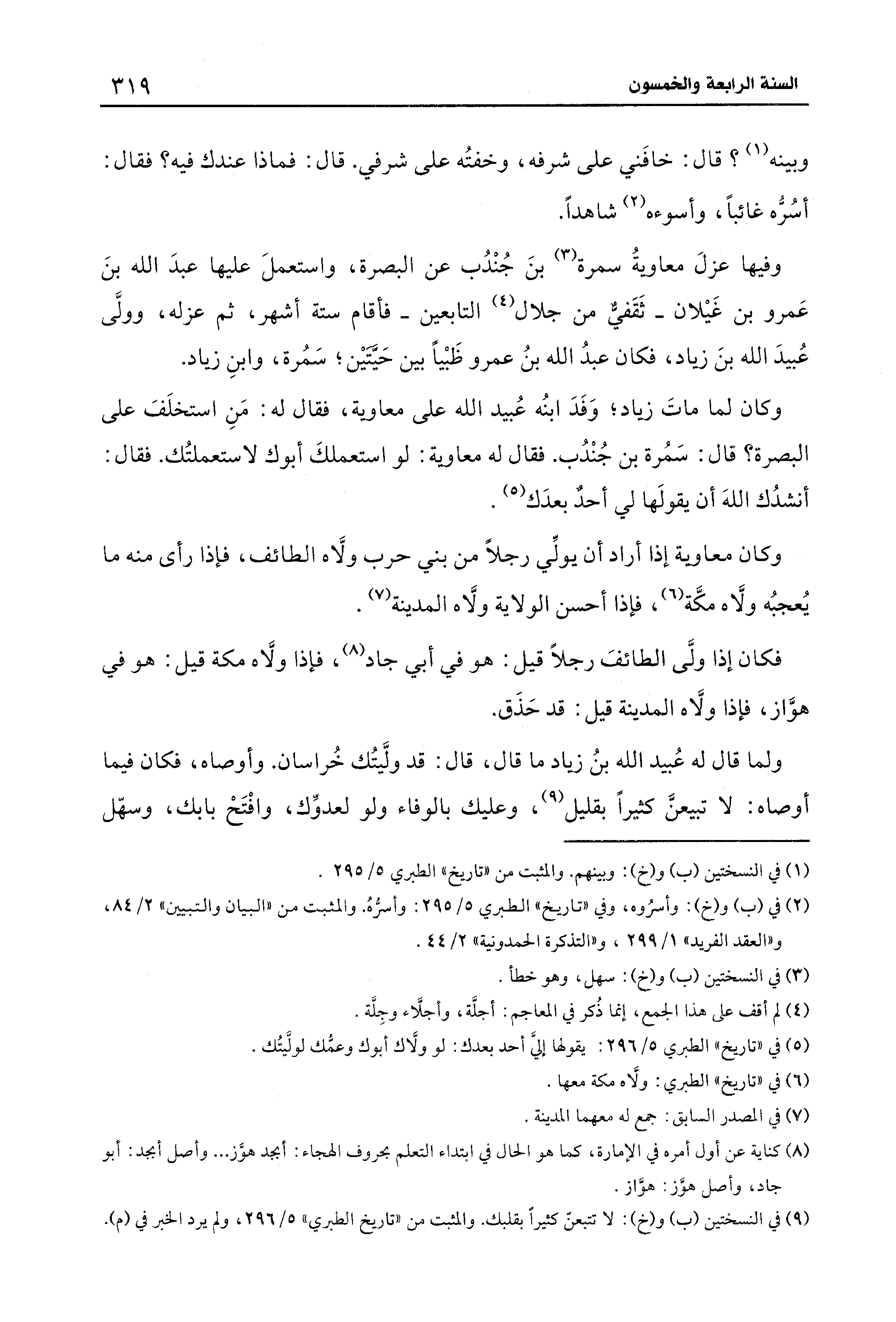 (¬5) في "تاريخ" الطبري 5/ 296: يقولها إليَّ أحد بعدك: لو ولَّاك أبوك وعمُّك لولَّيتُك.