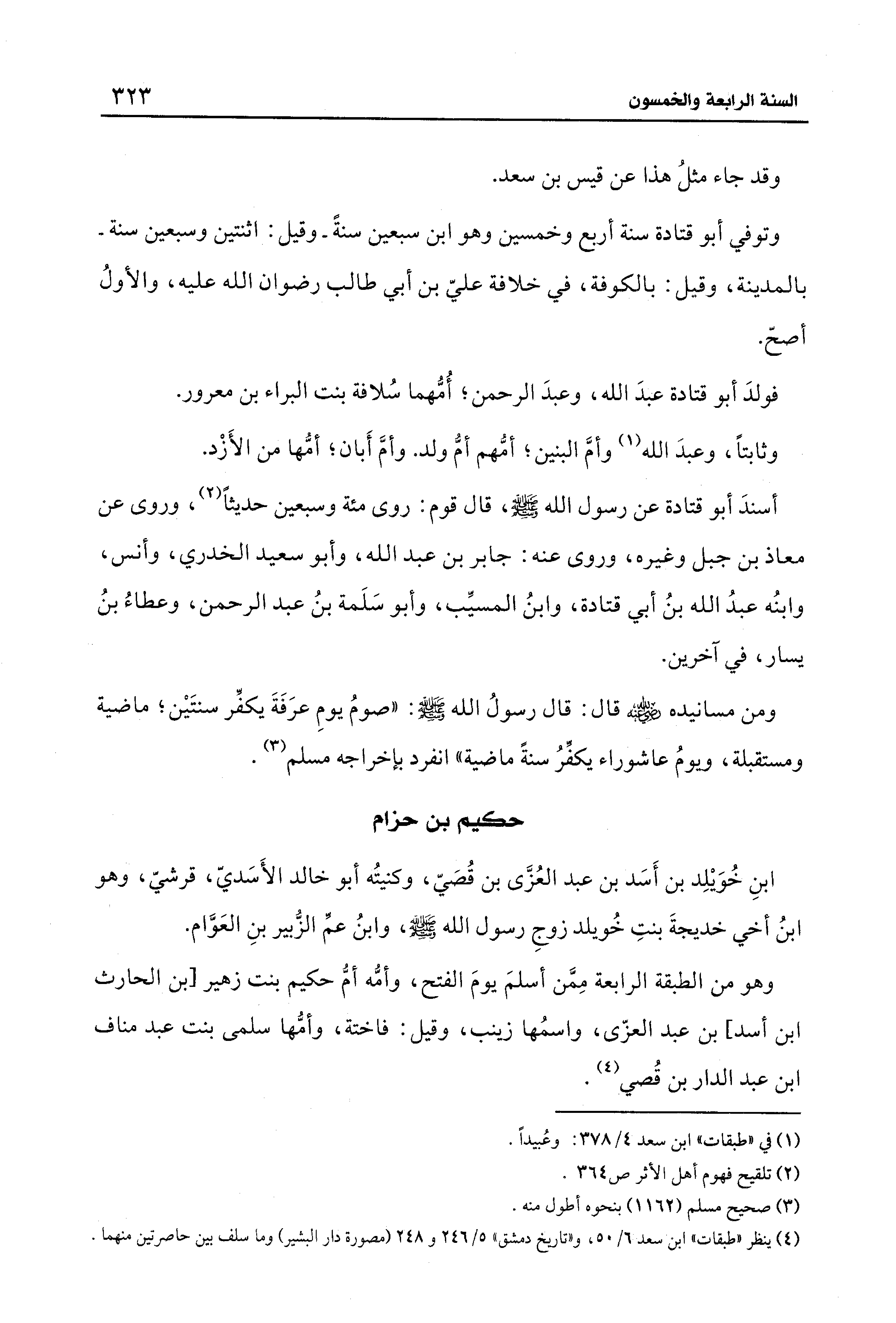 (¬4) ينظر "طبقات" ابن سعد 6/ 50، و"تاريخ دمشق" 5/ 246 و 248 (مصورة دار البشير) وما سلف بين حاصرتين منهما.