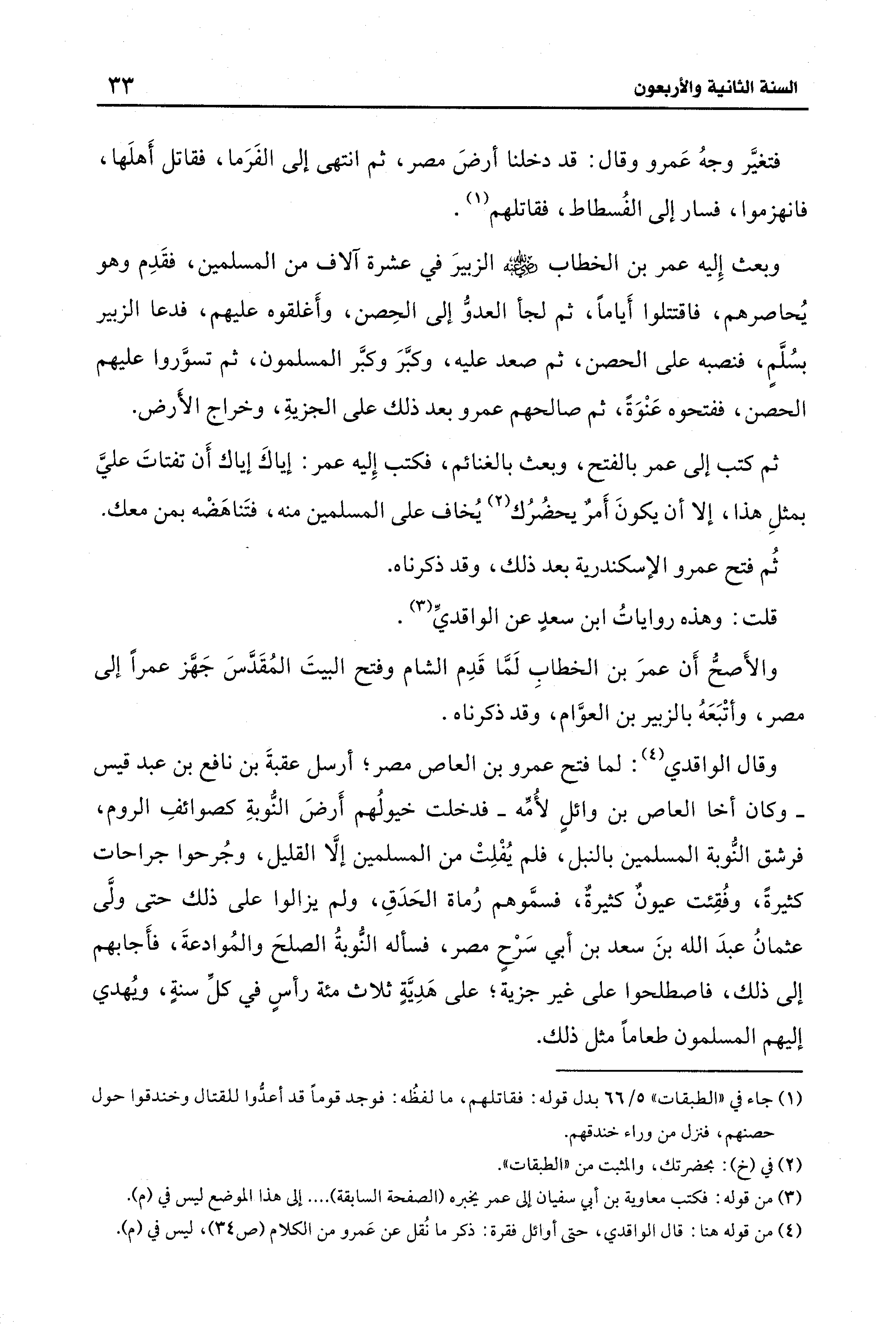 (¬4) من قوله هنا: قال الواقدي، حتى أوائل فقرة: ذكر ما نُقل عن عَمرو من الكلام (ص 34)، ليس في (م).