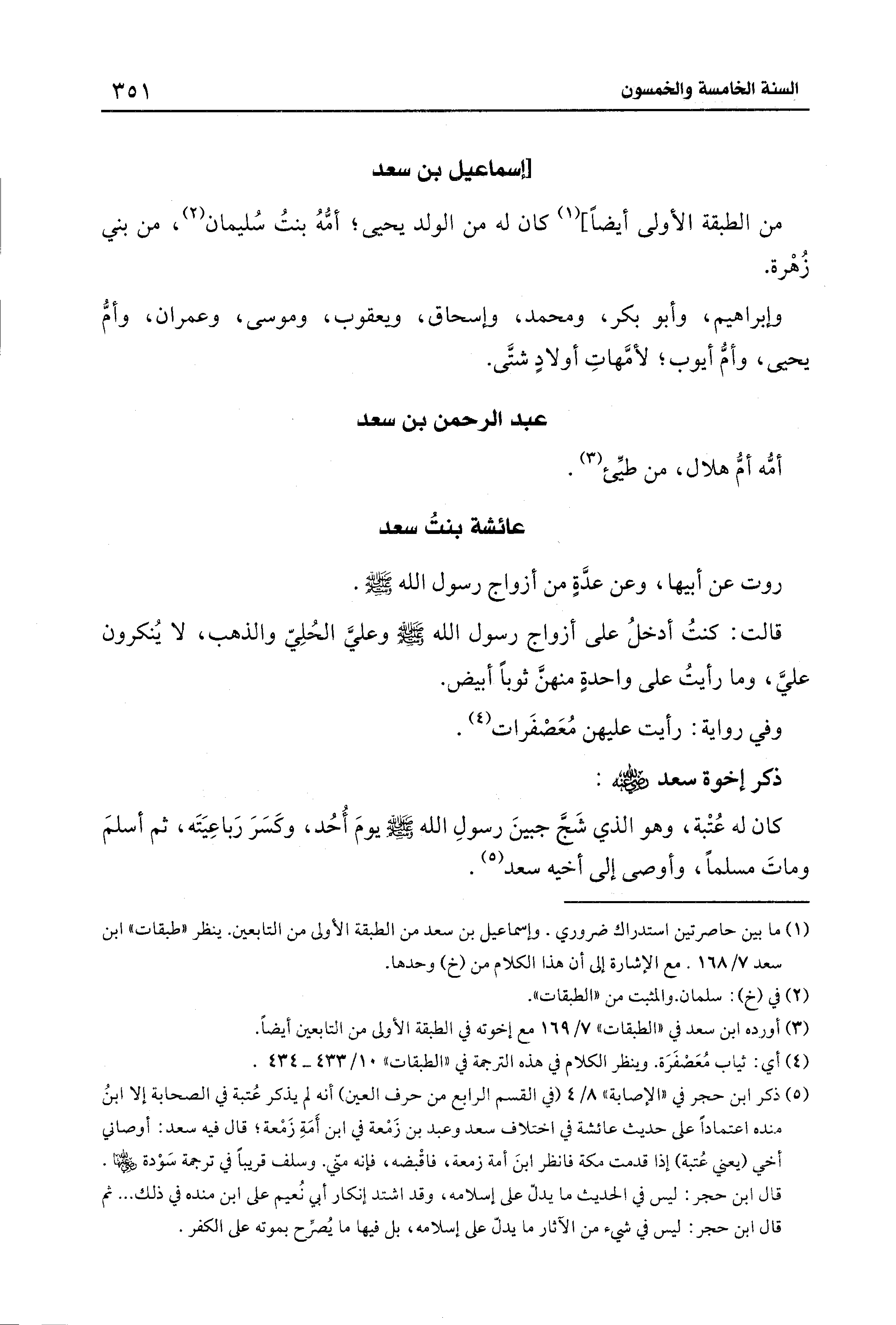 (¬1) ما بين حاصرتين استدراك ضروري. وإسماعيل بن سعد من الطبقة الأولى من التابعين. ينظر "طبقات" ابن سعد 7/ 168، مع الإشارة إلى أن هذا الكلام من (خ) وحدها.