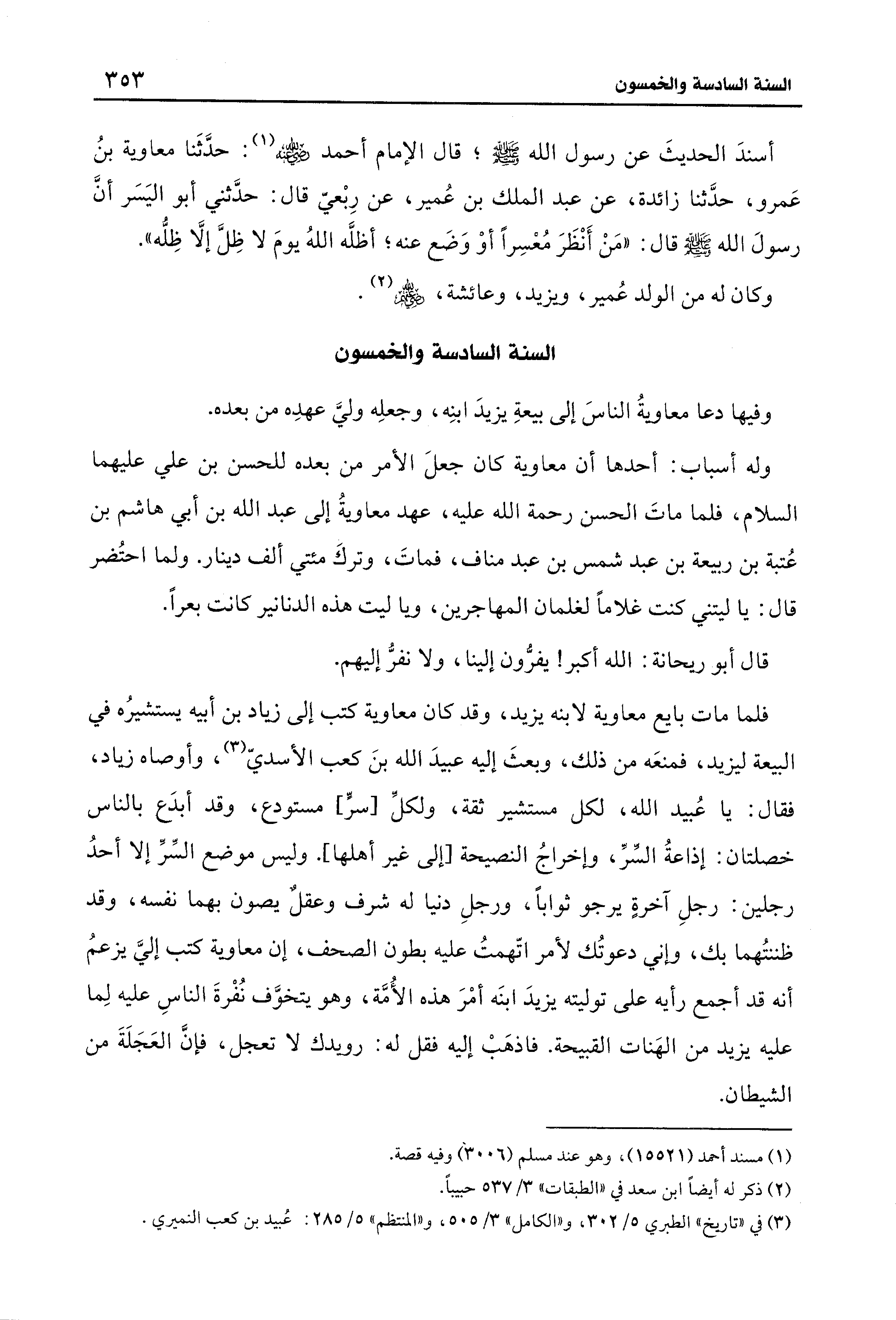 وفيها دعا معاويةُ الناسَ إلى بيعةِ يزيدَ ابنِه، وجعلِه وليَّ عهدِه من بعده.