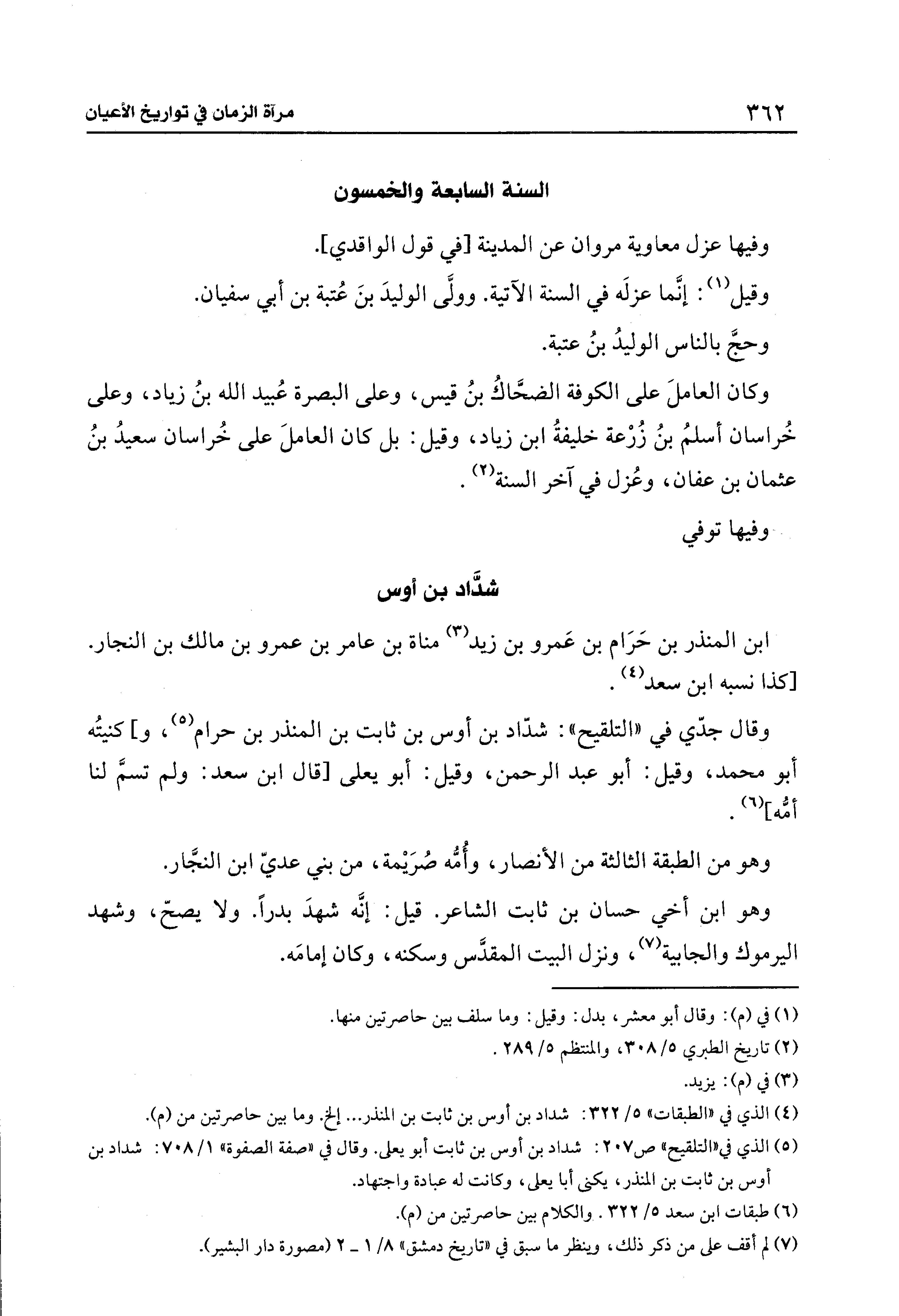 (¬5) الذي في "التلقيح" ص 207: شداد بن أوس بن ثابت أبو يعلى. وقال في "صفة الصفوة" 1/ 708: شداد بن أوس بن ثابت بن المنذر، يكنى أبا يعلى، وكانت له عبادة واجتهاد.