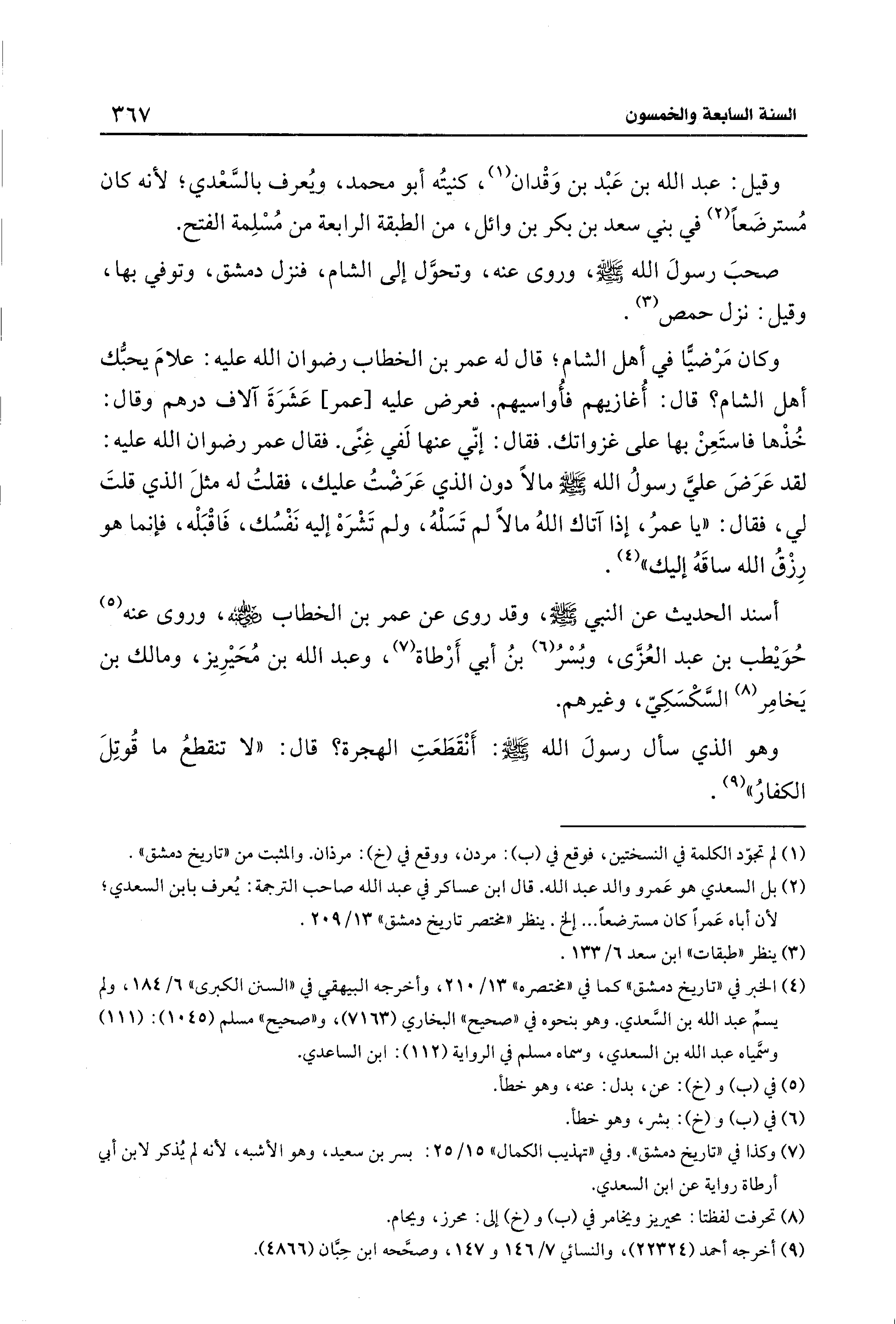 (¬2) بل السعدي هو عَمرو والد عبد الله. قال ابن عساكر في عبد الله صاحب الترجمة: يُعرف بابن السعدي" لأن أباه عَمرًا كان مسترضعًا. . . إلخ. ينظر "مختصر تاريخ دمشق" 13/ 209.