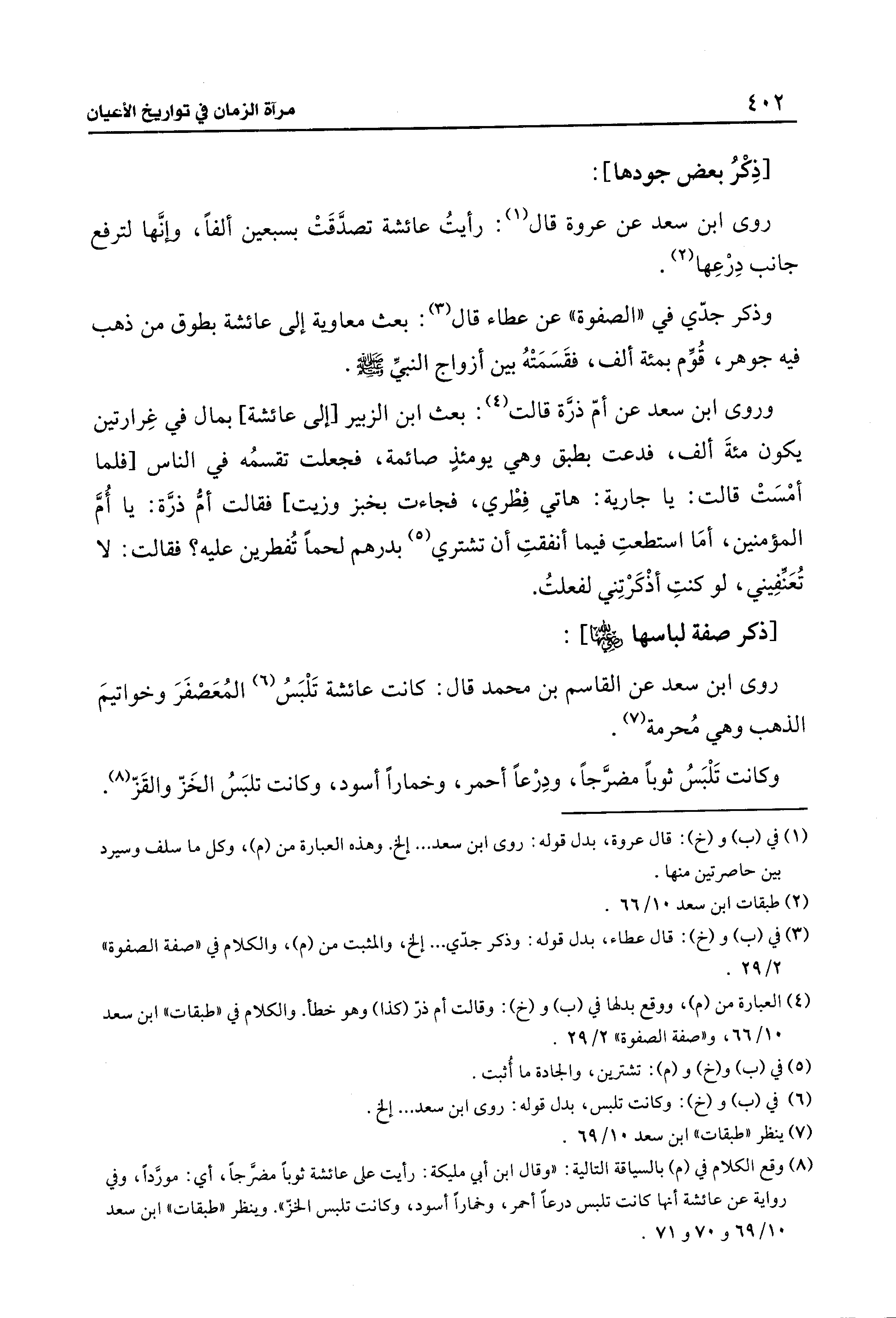 (¬6) في (ب) و (خ): وكانت تلبس، بدل قوله: روى ابن سعد. . . إلخ.