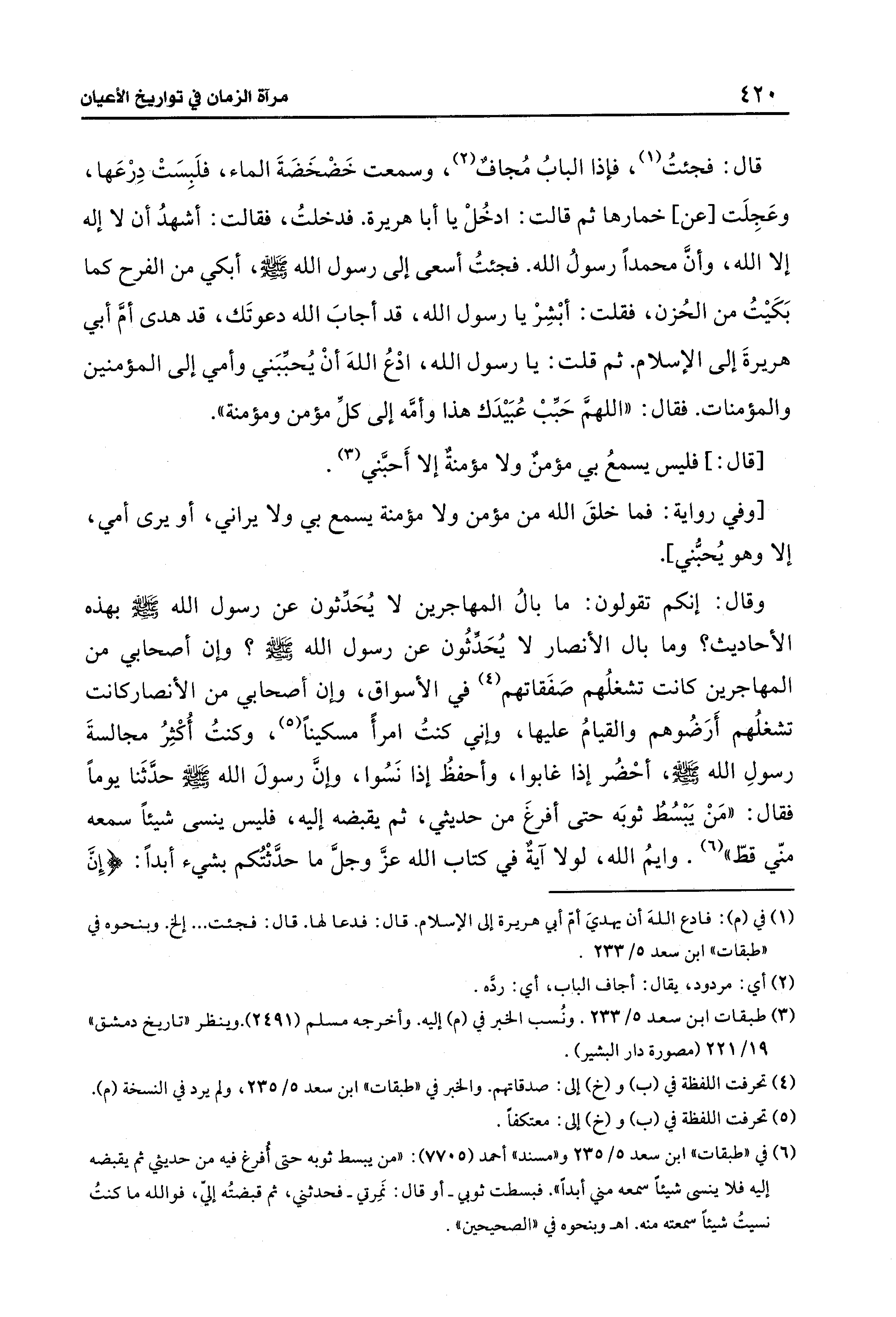 (¬6) في "طبقات" ابن سعد 5/ 235 و"مسند" أحمد (7705): "من يبسط ثوبه حتى أُفرغ فيه من حديثي ثم يقبضه إليه فلا ينسي شيئًا سمعه مني أبدًا". فبسطت ثوبي -أو قال: نَمِرتي- فحدثني، ثم قبضتُه إليّ، فوالله ما كنتُ نسيتُ شيئًا سمعته منه. اهـ وبنحوه في "الصحيحين".