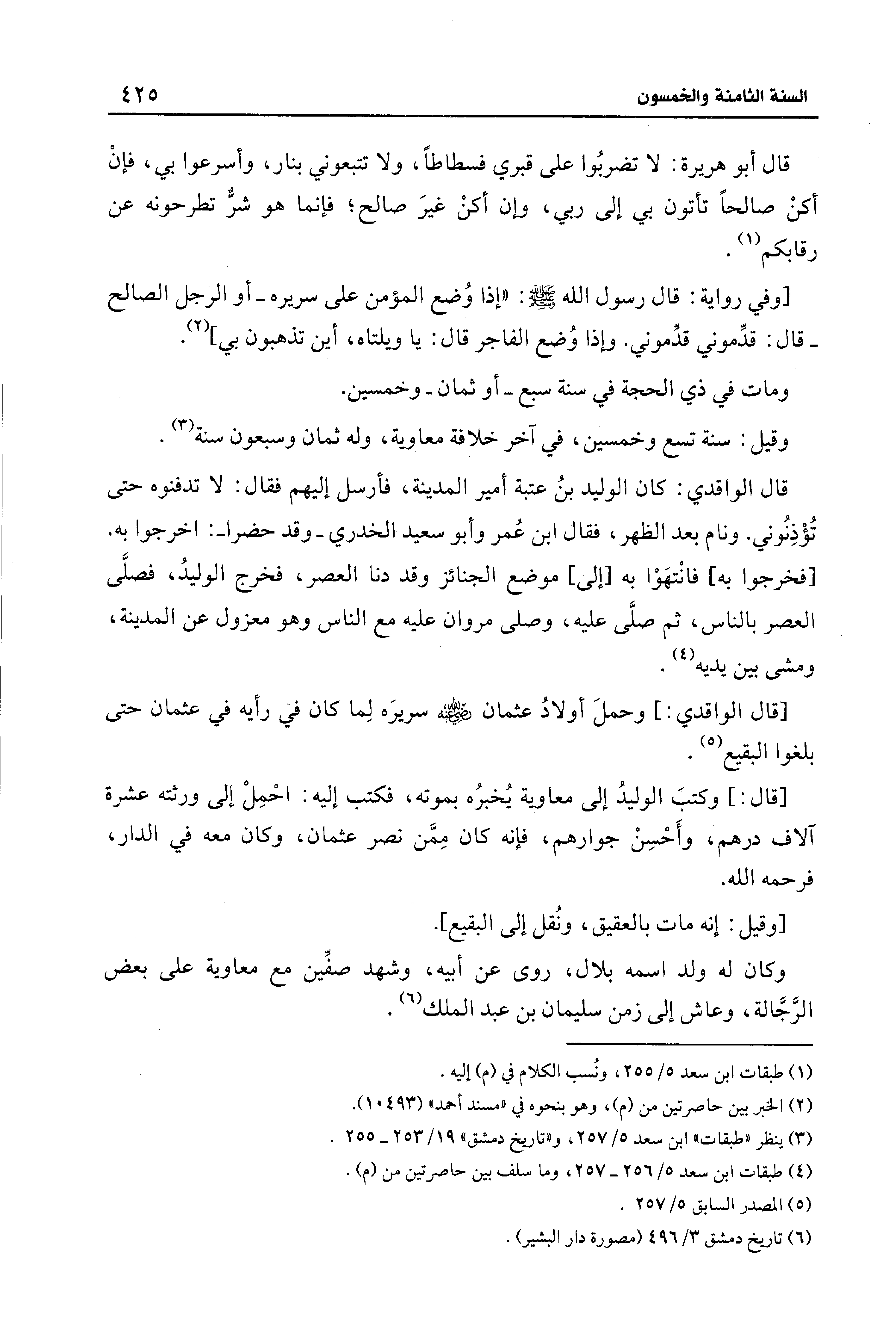 (¬3) ينظر "طبقات" ابن سعد 5/ 257، و"تاريخ دمشق" 19/ 253 - 255.