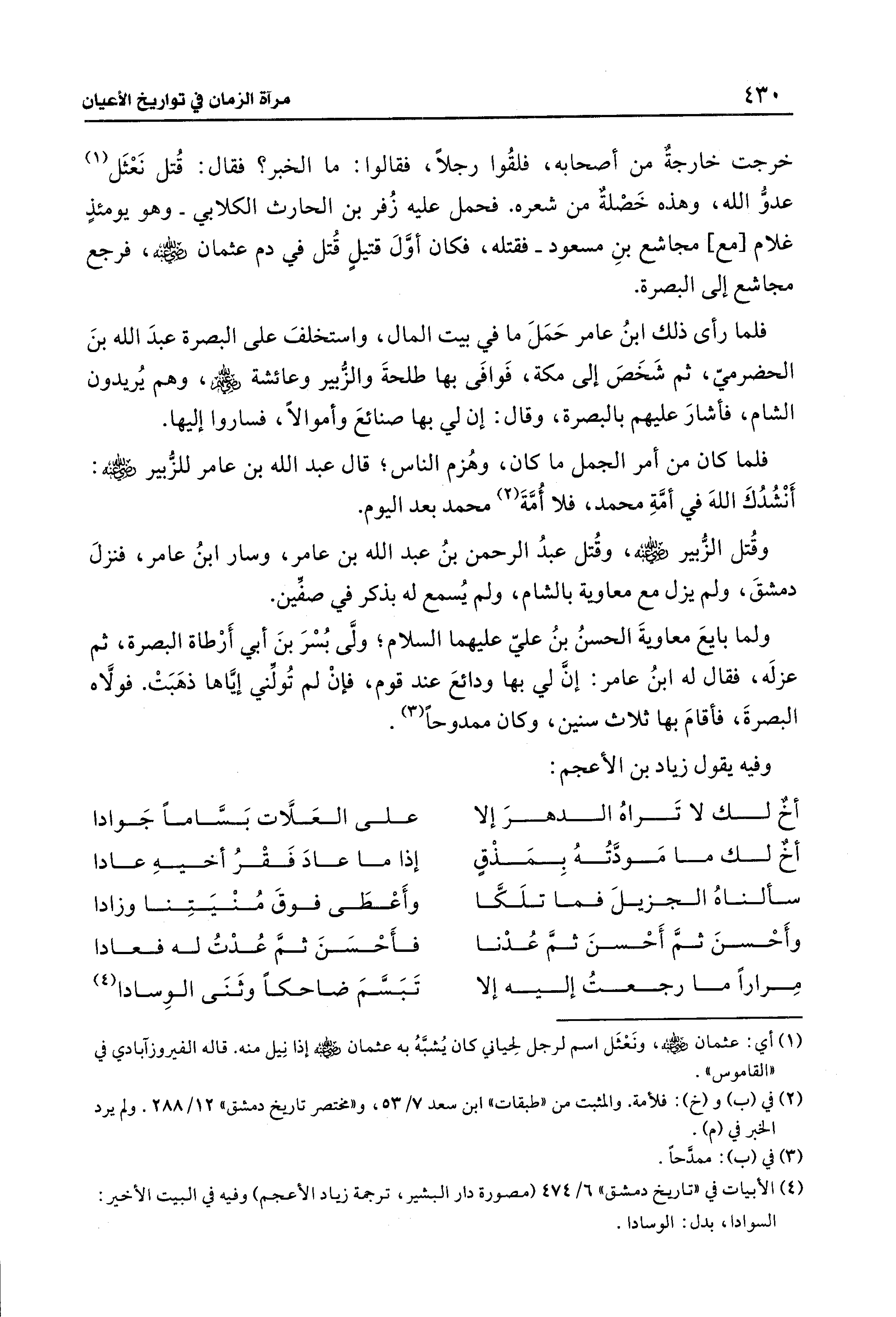 (¬4) الأبيات في "تاريخ دمشق" 6/ 474 (مصورة دار البشير، ترجمة زياد الأعجم) وفيه في البيت الأخير: السوادا، بدل: الوسادا.