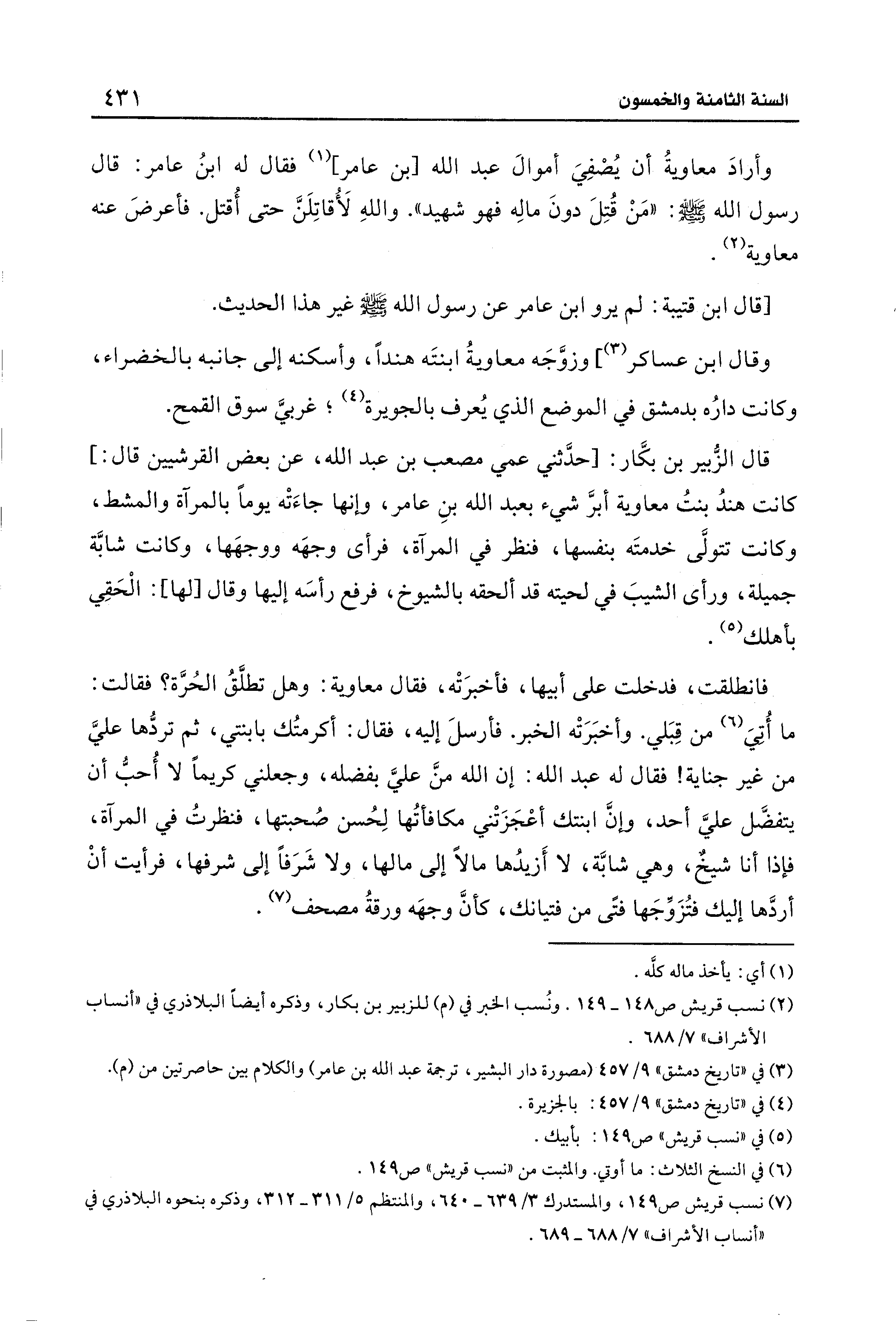 (¬7) نسب قريش ص 149، والمستدرك 3/ 639 - 640، والمنتظم 5/ 311 - 312، وذكره بنحوه البلاذري في "أنساب الأشراف" 7/ 688 - 689.
