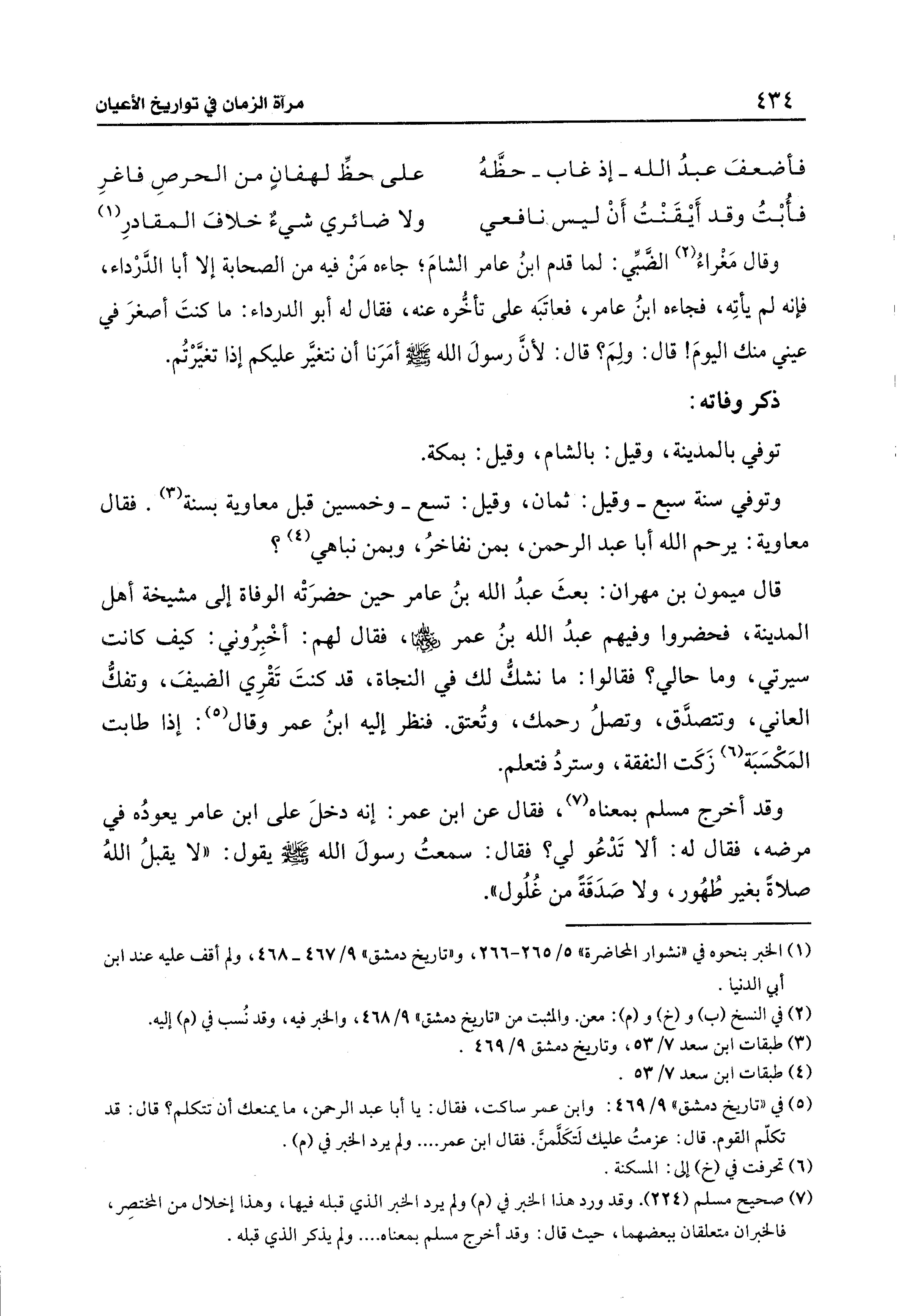 وتوفي سنة سبع -وقيل: ثمان، وقيل: تسع- وخمسين قبل معاوية بسنة (¬3). فقال معاوية: يرحم الله أبا عبد الرحمن، بمن نفاخرُ، وبمن نباهي (¬4)؟