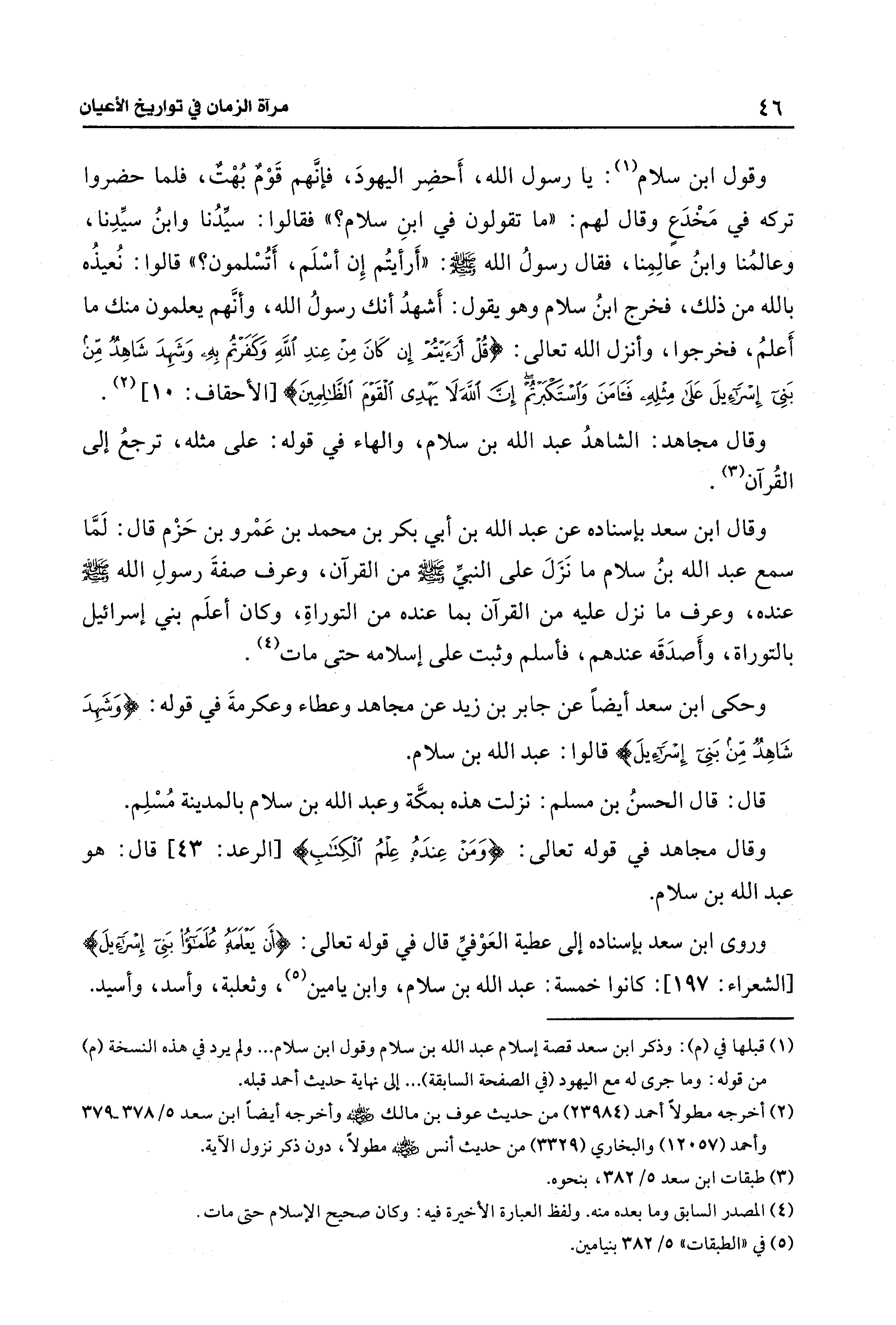 (¬1) قبلها في (م): وذكر ابن سعد قصة إسلام عبد الله بن سلام وقول ابن سلام ... ولم يرد في هذه النسخة (م) من قوله: وما جرى له مع اليهود (في الصفحة السابقة) ... إلى نهاية حديث أحمد قبله.
