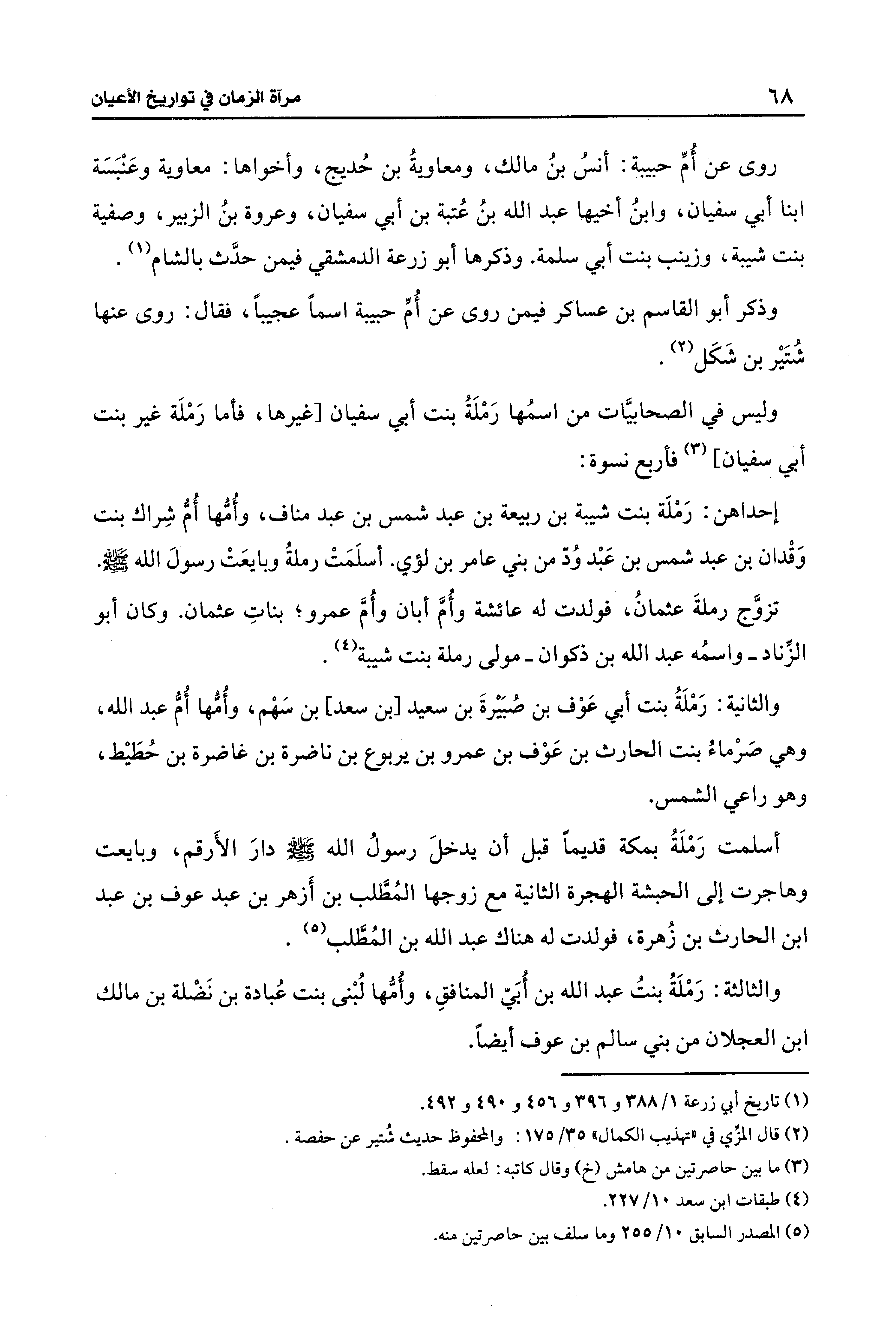 إحداهن: رَمْلَة بنت شيبة بن ربيعة بن عبد شمس بن عبد مناف، وأُمُّها أُمُّ شِراك بنت وَقْدان بن عبد شمس بن عَبْد وُدّ من بني عامر بن لؤي. أسلَمَتْ رملةُ وبايعَتْ رسولَ الله - صلى الله عليه وسلم -. تزوَّج رملةَ عثمانُ، فولدت له عائشة وأُمَّ أبان وأُمَّ عمرو؛ بناتِ عثمان. وكان أبو الزِّناد - واسمُه عبد الله بن ذكوان - مولى رملة بنت شيبة (¬4).
