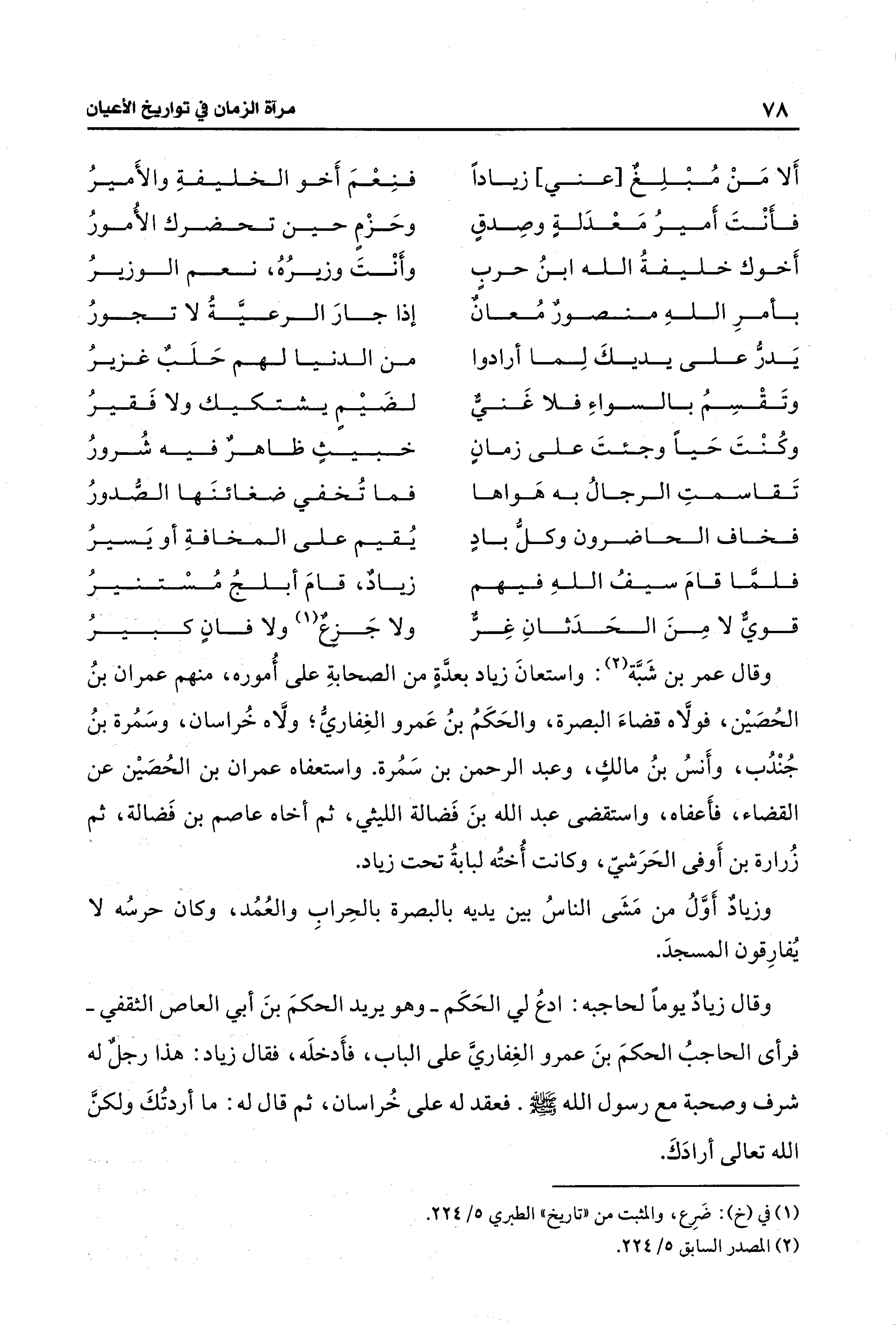 وزيادٌ أَوَّلُ من مَشَى الناسُ بين يديه بالبصرة بالحِرابِ والعُمُد، وكان حرسُه لا يُفارِقون المسجدَ.