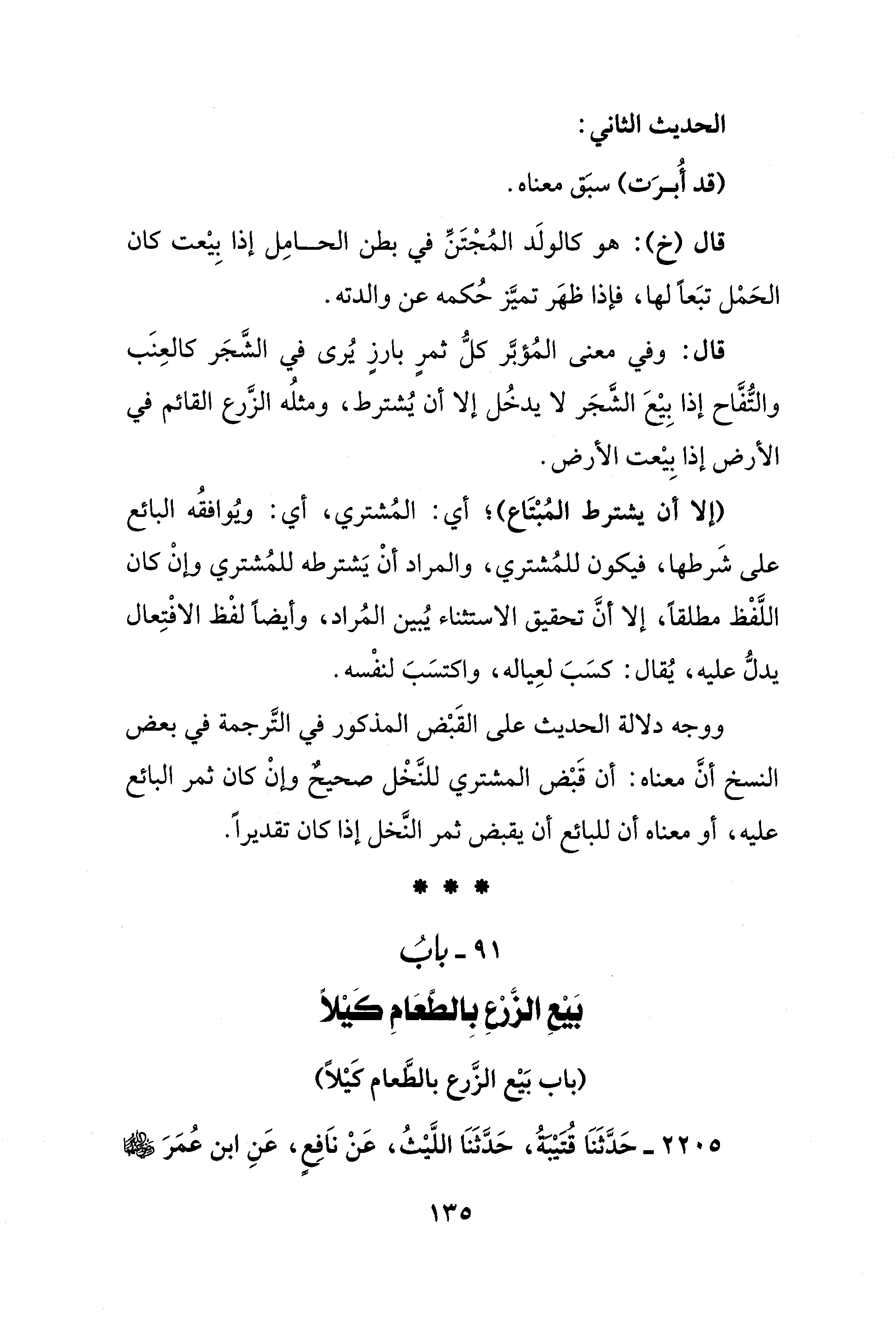 قال: وفي معنى المُؤبَّر كلُّ ثمرٍ بارزٍ يُرى في الشَّجَر كالعِنَب والتُّفَّاح إذا بِيْعَ الشَّجَر لا يدخُل إلا أن يُشترط، ومثلُه الزَّرع القائم في الأرض إذا بِيْعت الأرض.