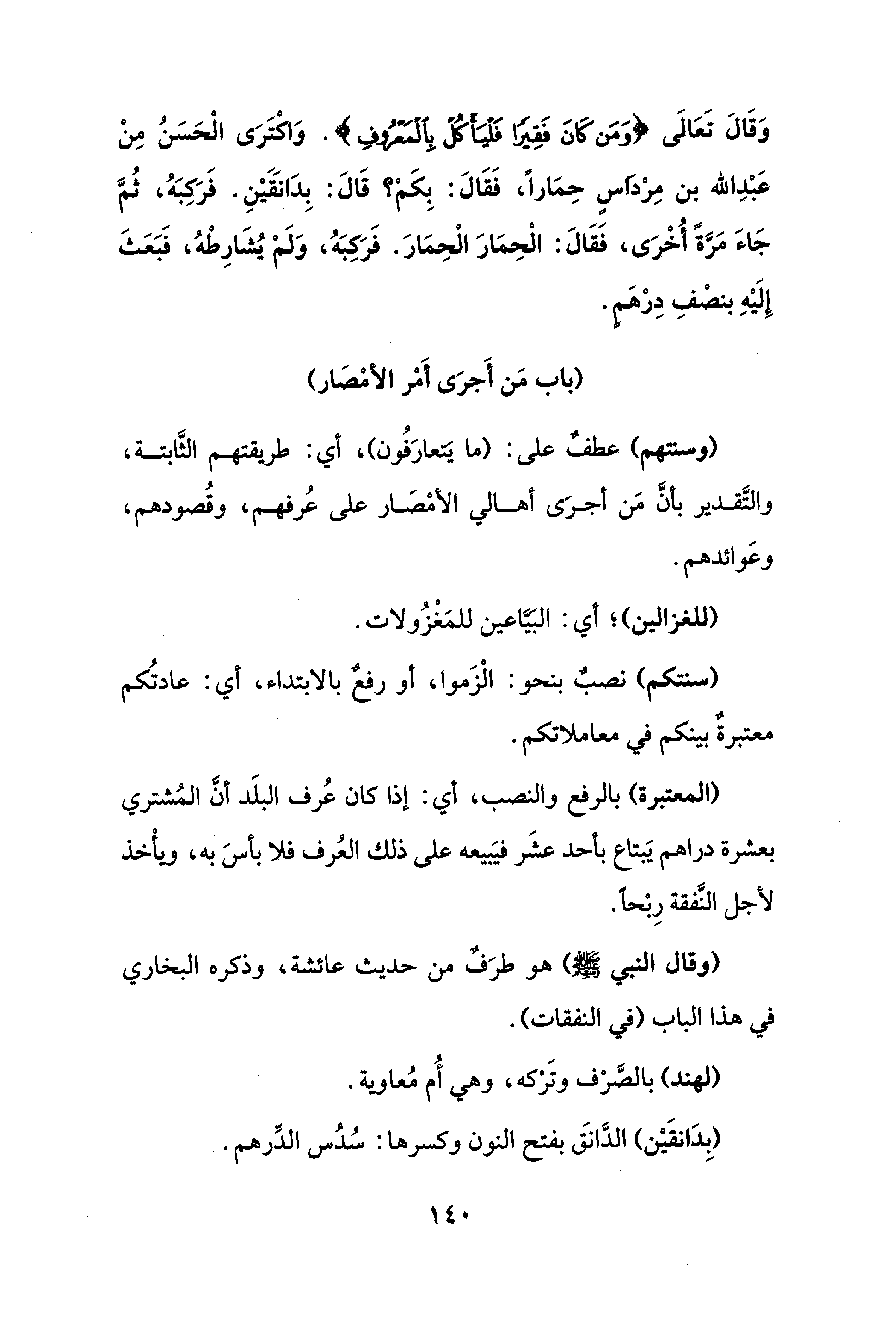 (وسنتهم) عطفٌ على: (ما يَتعارَفُون)، أي: طريقتهم الثَّابتة، والتَّقدير بأنَّ مَن أجرَى أهالي الأمْصَار على عُرفهم، وقُصودهم، وعَوائدهم.
