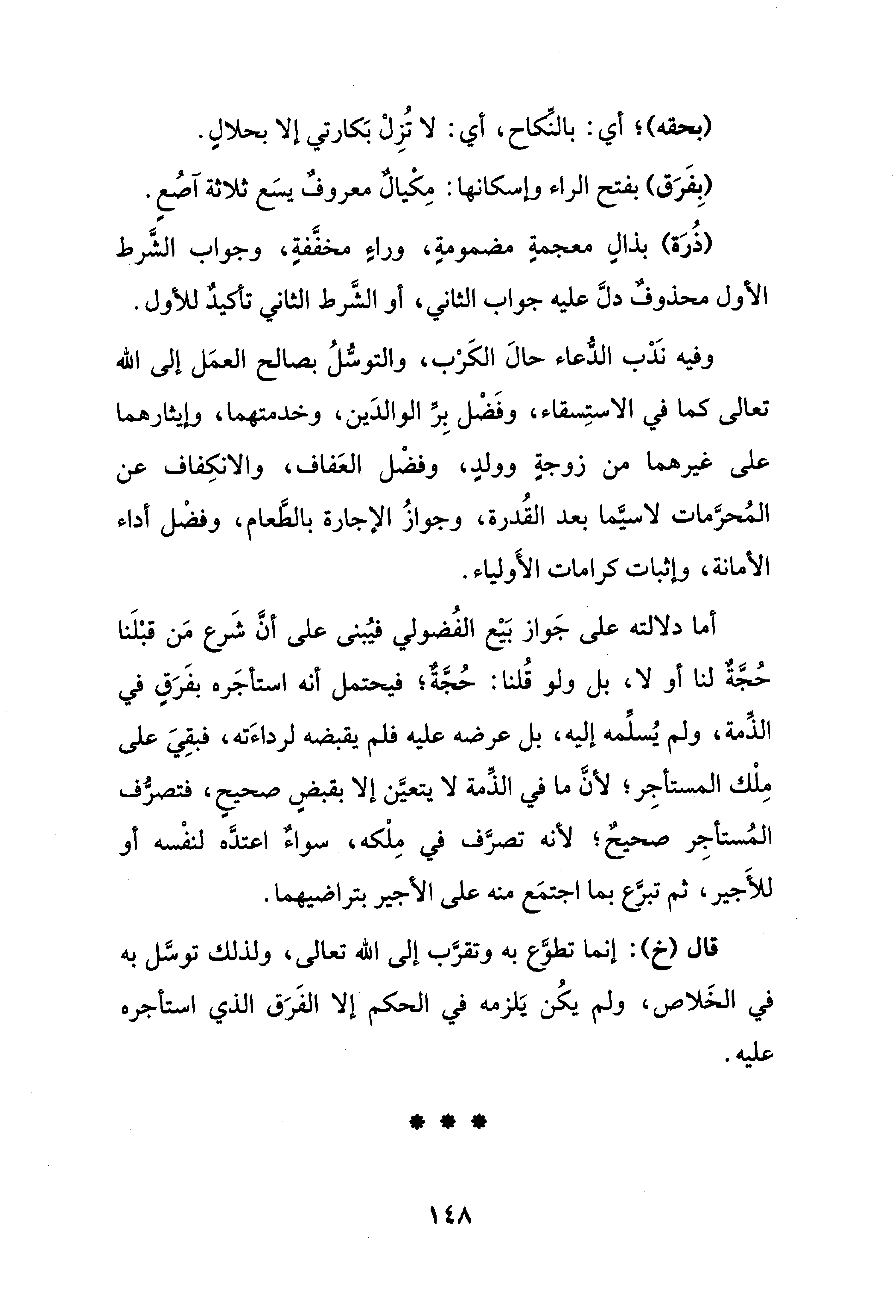 أما دلالته على جَواز بَيْع الفُضولي فيُبنى على أنَّ شَرع مَن قبْلَنا حُجَّةٌ لنا أو لا، بل ولو قُلنا: حُجَّةٌ؛ فيحتمل أنه استأجَره بفَرَقٍ في الذِّمة، ولم يُسلِّمه إليه، بل عرضه عليه فلم يقبضه لرداءَته، فبقِيَ على مِلْك المستأجِر؛ لأنَّ ما في الذِّمة لا يتعيَّن إلا بقبضٍ صحيحٍ، فتصرُّف المُستأجِر صحيح؛ لأنه تصرَّف في مِلْكه، سواءٌ اعتدَّه لنفْسه أو للأَجير، ثم تبرَّع بما اجتمَع منه على الأجير بتراضيهما.