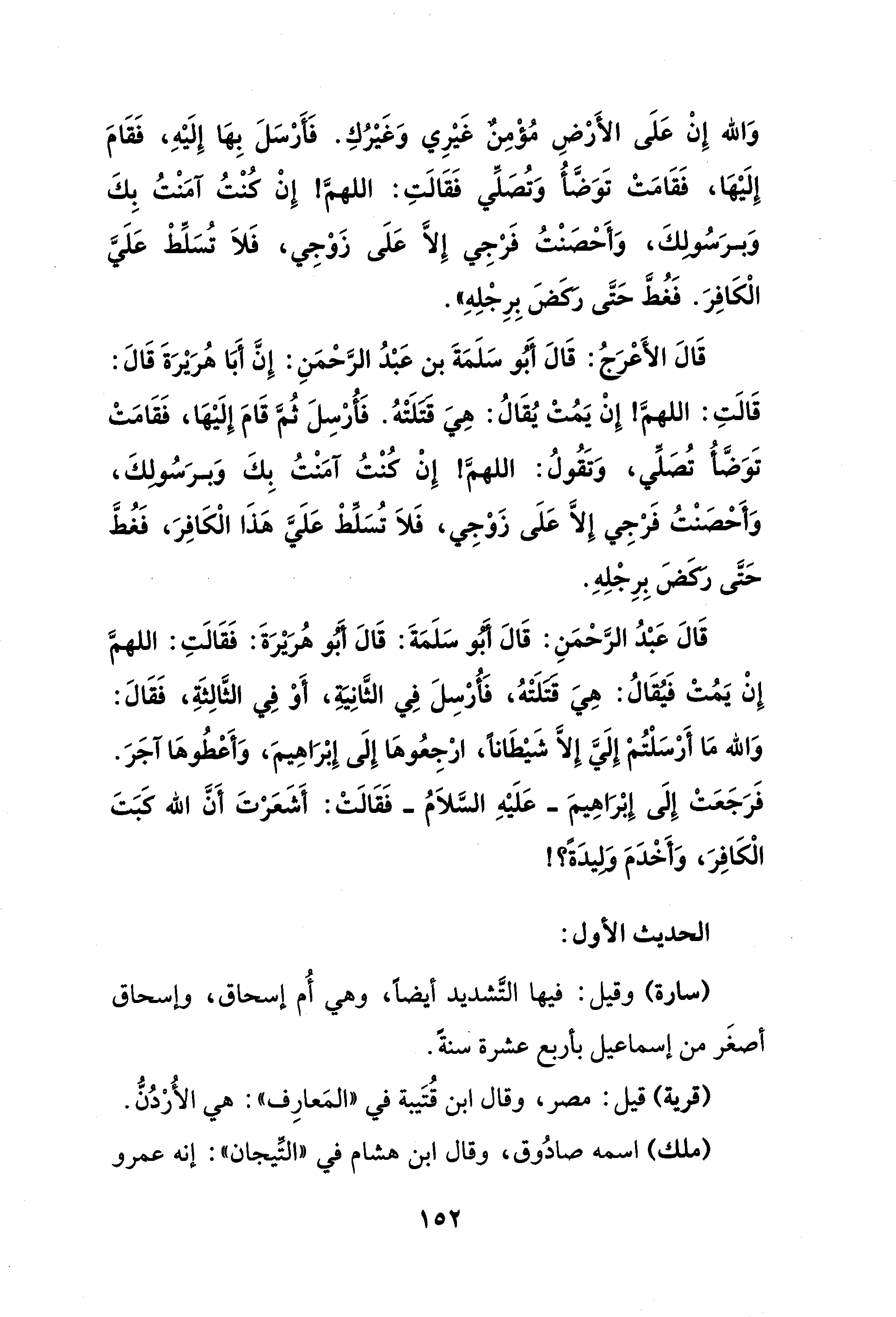 قَالَ عَبْدُ الرَّحْمَنِ: قَالَ أَبُو سَلَمَةَ: قَالَ أَبُو هُرَيْرَةَ: فَقَالَتِ: اللهمَّ إِنْ يَمُتْ فَيُقَالُ: هِيَ قَتَلَتْهُ، فَأُرْسِلَ في الثَّانِيَةِ، أَوْ فِي الثَّالِثَةِ، فَقَالَ: وَالله مَا أَرْسَلْتُمْ إِلَيَّ إِلَّا شَيْطَانًا، ارْجِعُوهَا إِلَى إِبْرَاهِيمَ، وَأَعْطُوهَا آجَرَ. فَرَجَعَتْ إِلَى إِبْرَاهِيمَ -عَلَيْهِ السَّلاَمُ- فَقَالَتْ: أَشَعَرْتَ أَنَّ الله كَبَتَ الْكَافِرَ، وَأَخْدَمَ وَلِيدَةً؟!