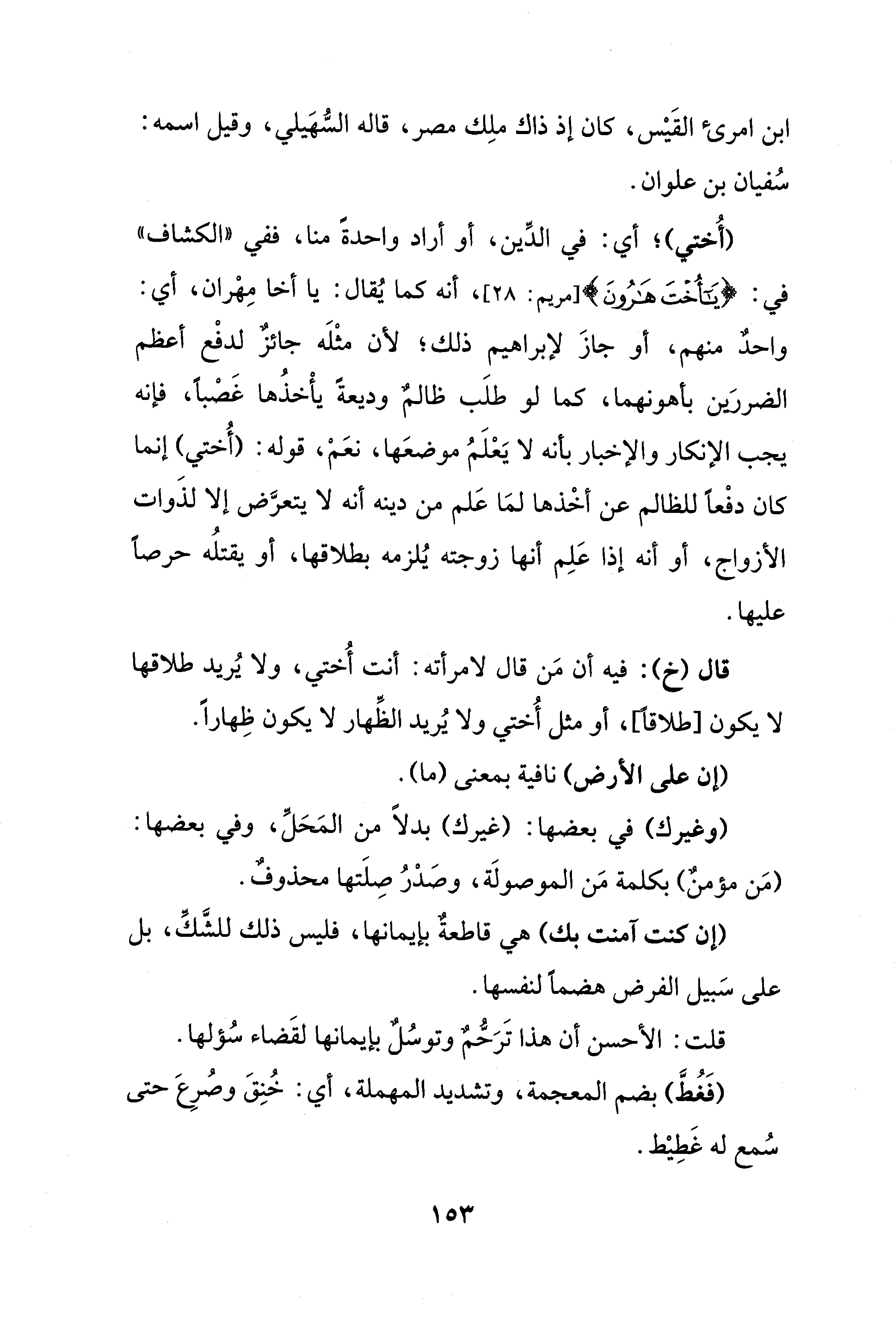 (أُختي)؛ أي: في الدِّين، أو أراد واحدةً منا، ففي "الكشاف" في: {يَاأُخْتَ هَارُونَ} [مريم: 28]، أنه كما يُقال: يا أخا مِهْران، أي: واحدٌ منهم، أو جازَ لإبراهيم ذلك؛ لأن مثْلَه جائزٌ لدفْع أعظم الضررَين بأهونهما، كما لو طلَب ظالمٌ وديعةً يأْخذُها غَصْبًا، فإنه يجب الإنكار والإخبار بأنه لا يَعْلَمُ موضعَها، نعَمْ، قوله: (أُختي) إنما كان دفْعًا للظالم عن أخْذها لمَا عَلم من دينه أنه لا يتعرَّض إلا لذَوات الأزواج، أو أنه إذا عَلِم أنها زوجته يُلزمه بطلاقها، أو يقتلُه حرصًا عليها.