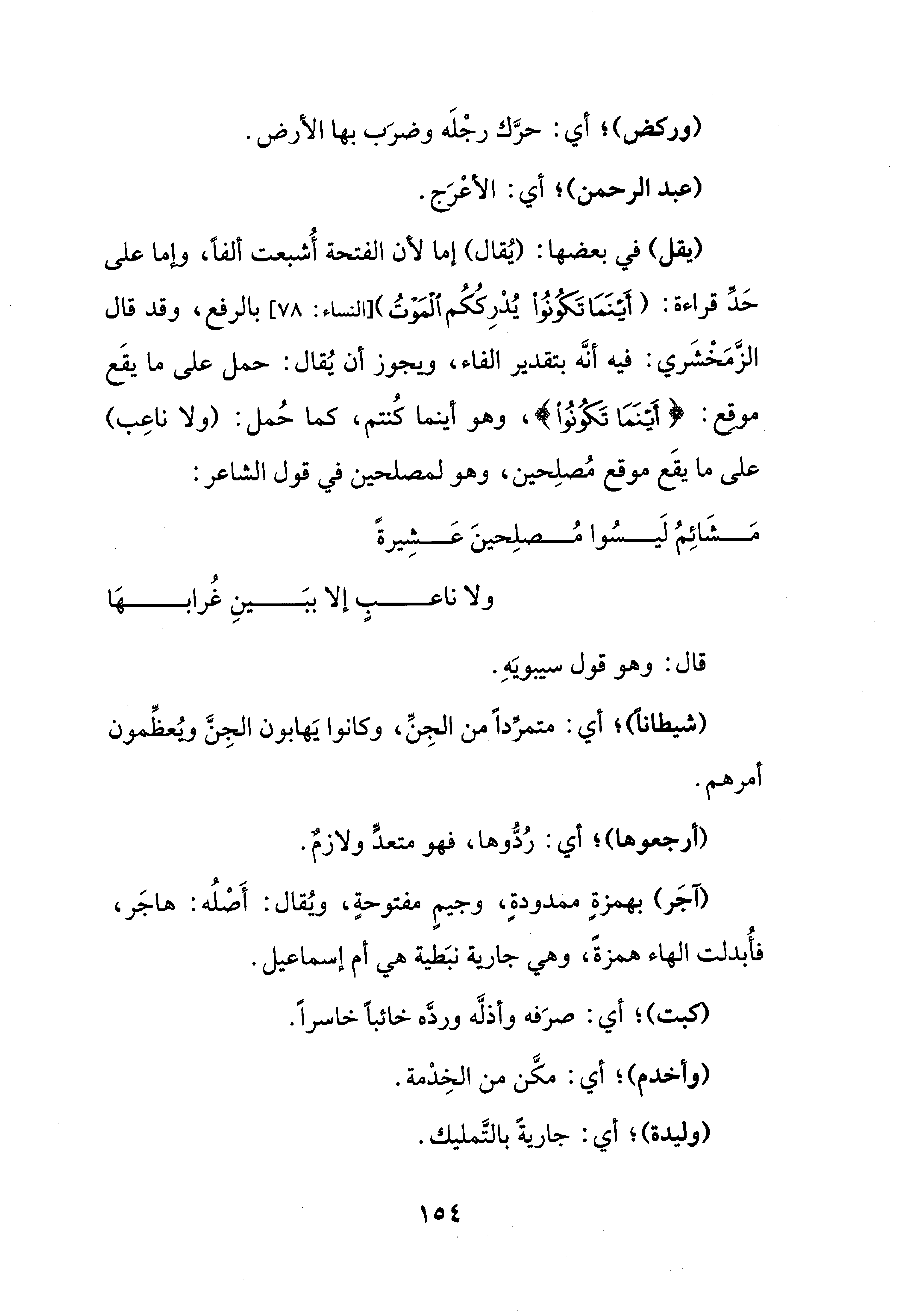 (يقل) في بعضها: (يُقال) إما لأن الفتحة أُشبعت ألفًا، وإما على حَدِّ قراءة: {أَيْنَمَا تَكُونُوا يُدْرِكْكُمُ الْمَوْتُ} [النساء: 78] بالرفع، وقد قال الزَّمَخْشَري: فيه أنَّه بتقدير الفاء، ويجوز أن يُقال: حمل على ما يقَع موقِع: {أَيْنَمَا تَكُونُوا}، وهو أينما كُنتم، كما حُمل: (ولا ناعِب) على ما يقَع موقع مُصلِحين، وهو لمصلحين في قول الشاعر:
