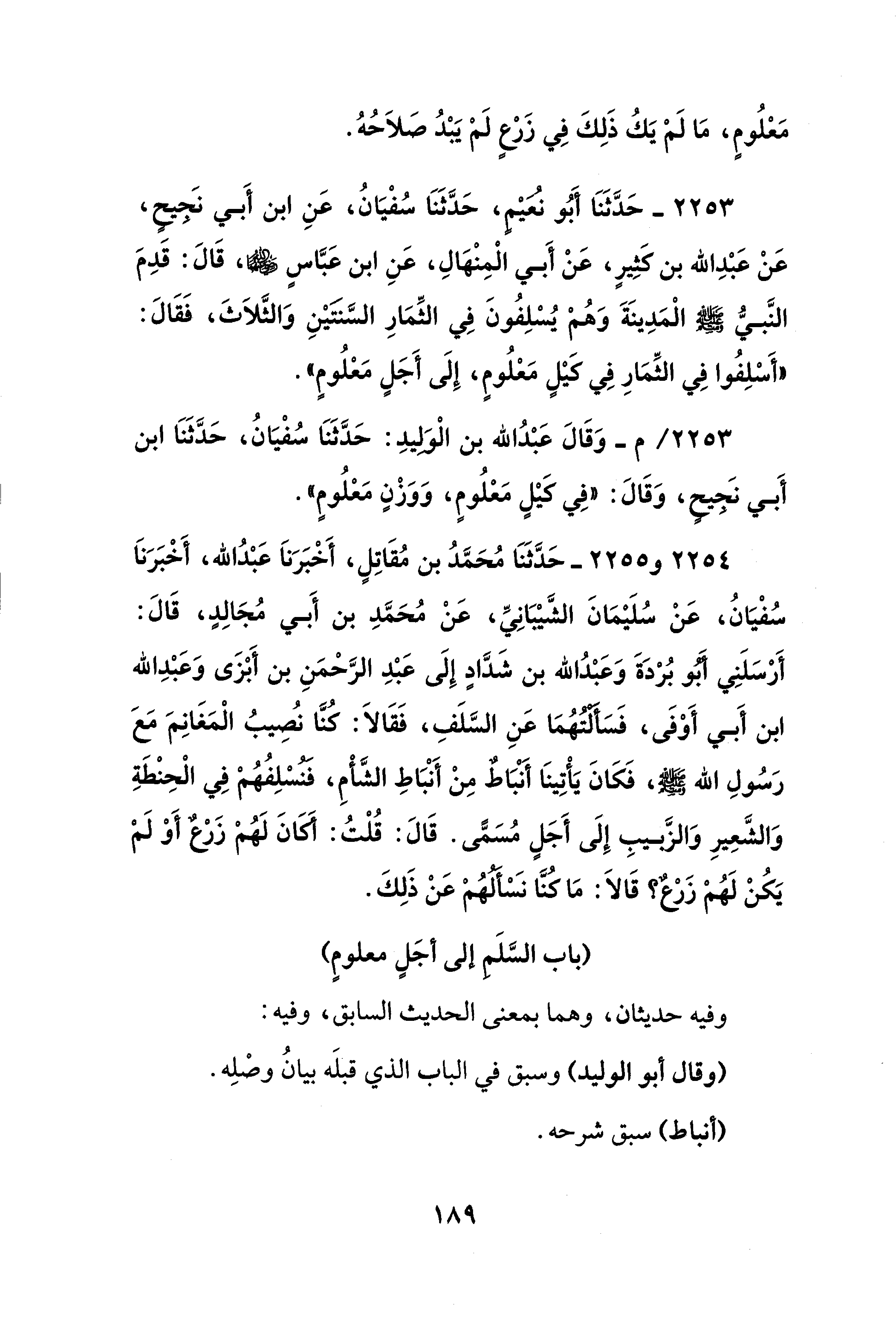 2253 / -م - وَقَالَ عَبْدُ الله بن الْوَلِيدِ: حَدَّثَنَا سُفْيَانُ، حَدَّثَنَا ابن أَبي نَجِيحٍ، وَقَالَ: "فِي كَيْلٍ مَعْلُومٍ، وَوَزْنٍ مَعْلُومٍ".