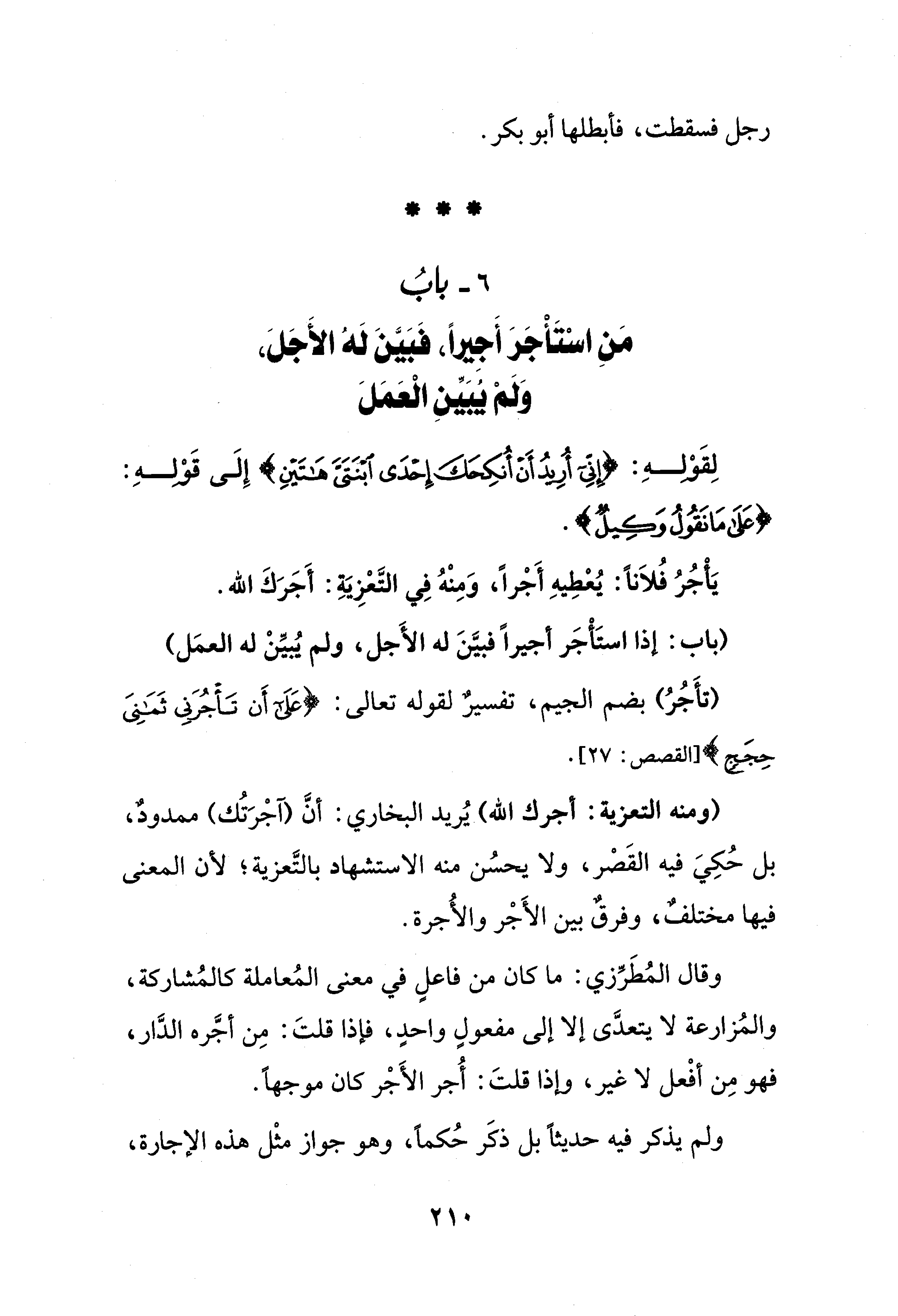 ولم يذكر فيه حديثًا بل ذكَر حُكمًا، وهو جواز مثْل هذه الإجارة،
