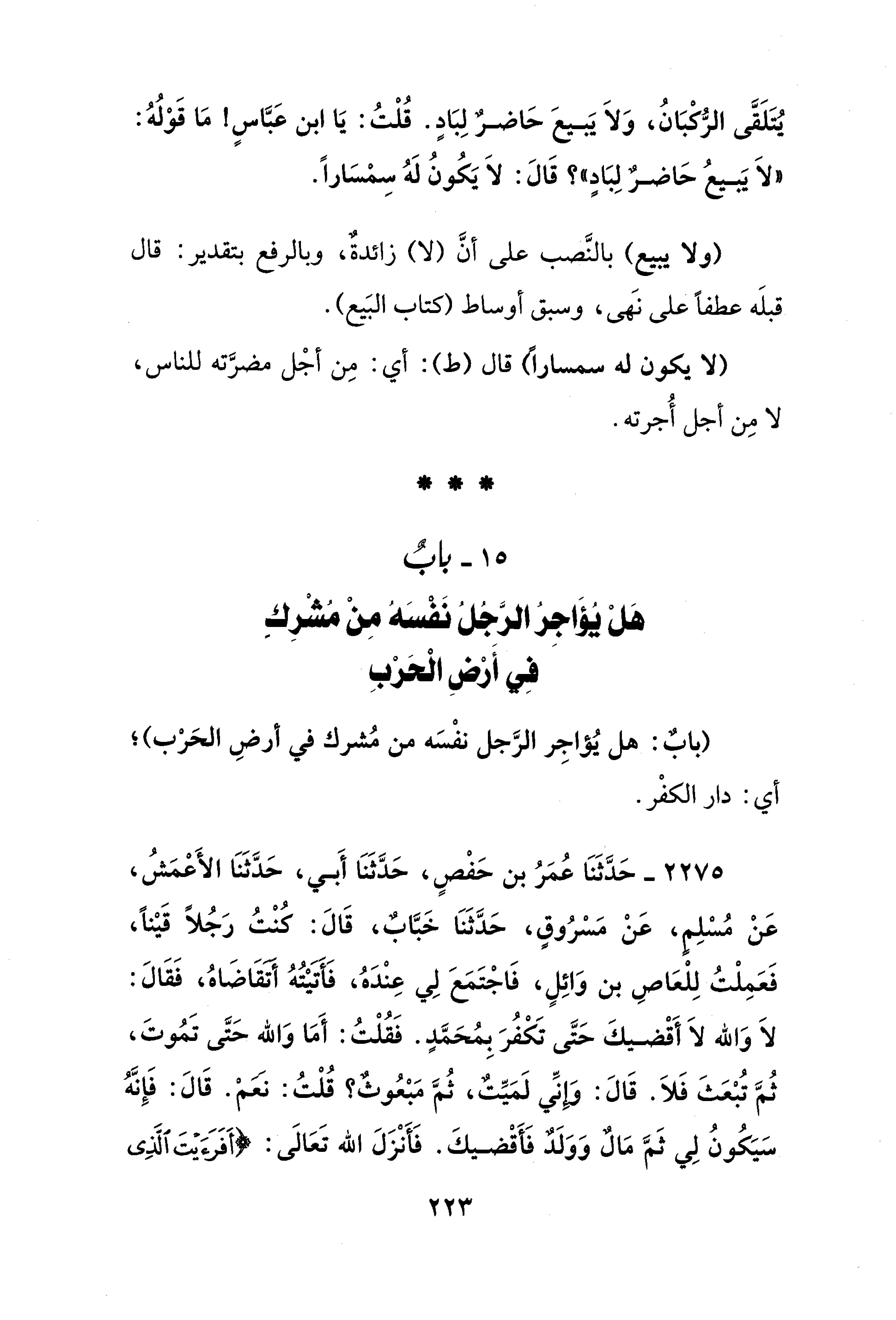 15 - بابٌ هَلْ يُؤَاجِرُ الرَّجُلُ نَفْسَهُ مِنْ مُشْرِكٍ في أَرْضِ الْحَرْبِ